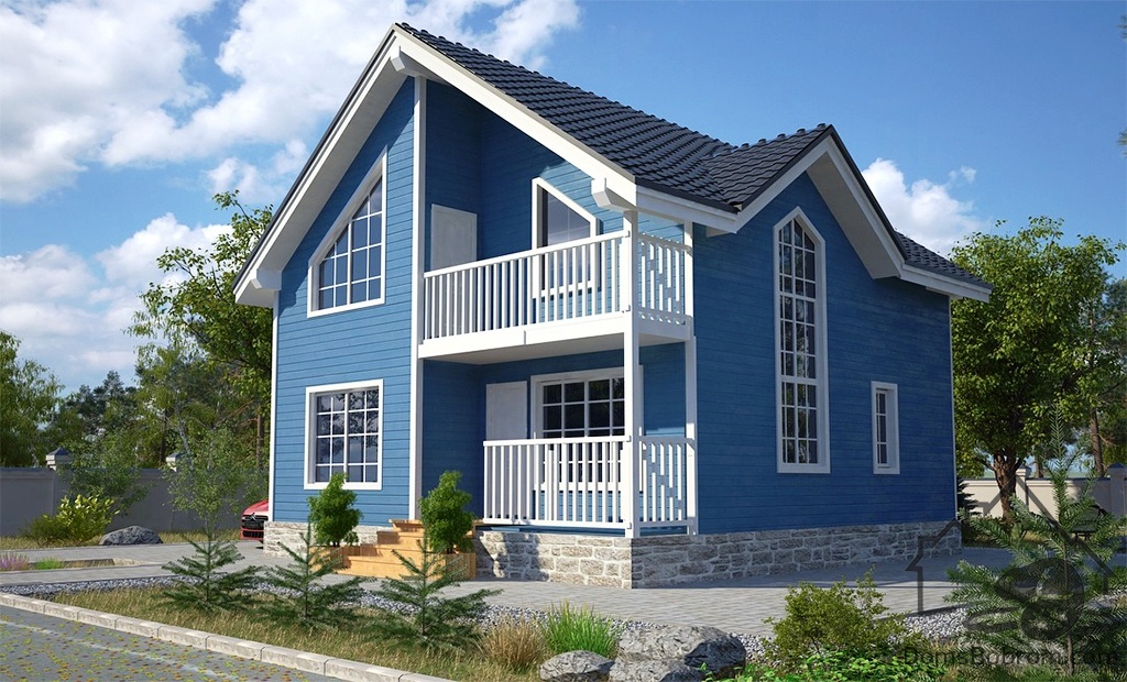 Например, в первом варианте это дом с просторной гостиной, кухней-столовой и 3мя спальнями, санузлом, балконами.