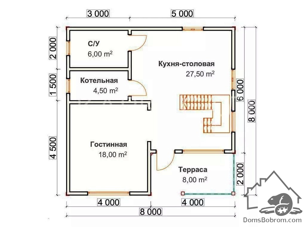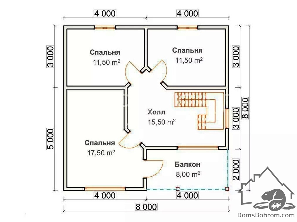Размер дома 8 м х 8 м