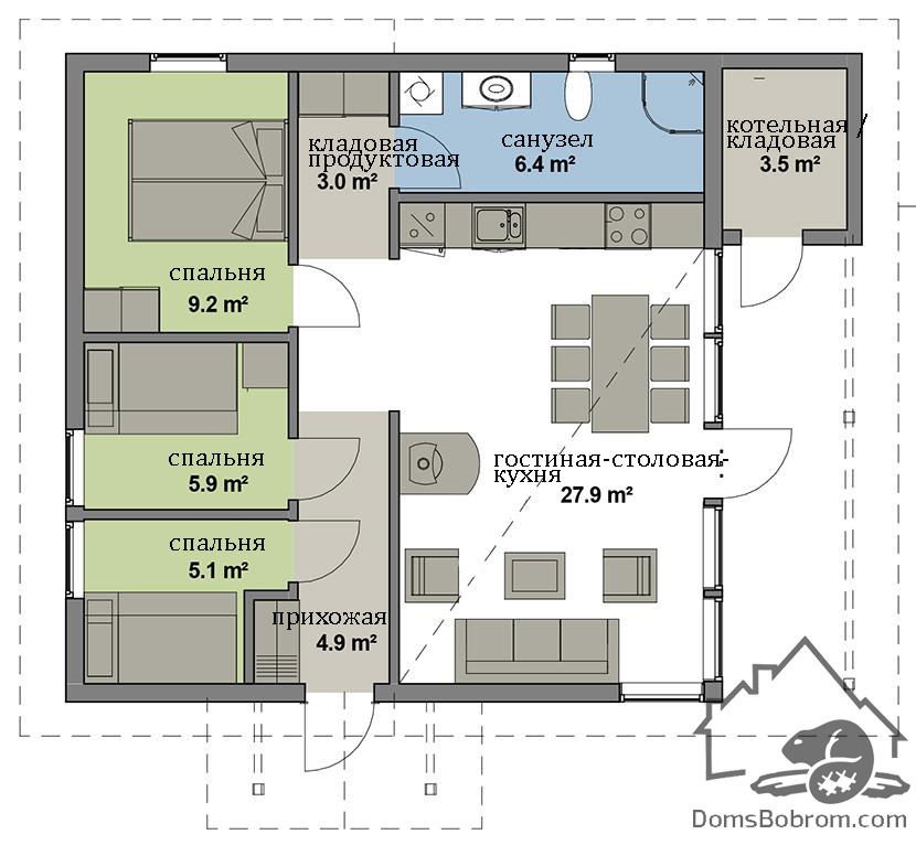 У дома Granasen гибкая планировка, ее можно адаптировать практически под любые потребности. В базовой комплектации 3 спальни, просторная ванная комната и большой чердак-антресоль. В гостиной / кухне высокие потолки, туда попадает много света. Крытая терраса позволяет приятно провести время на открытом воздухе в любую погоду.