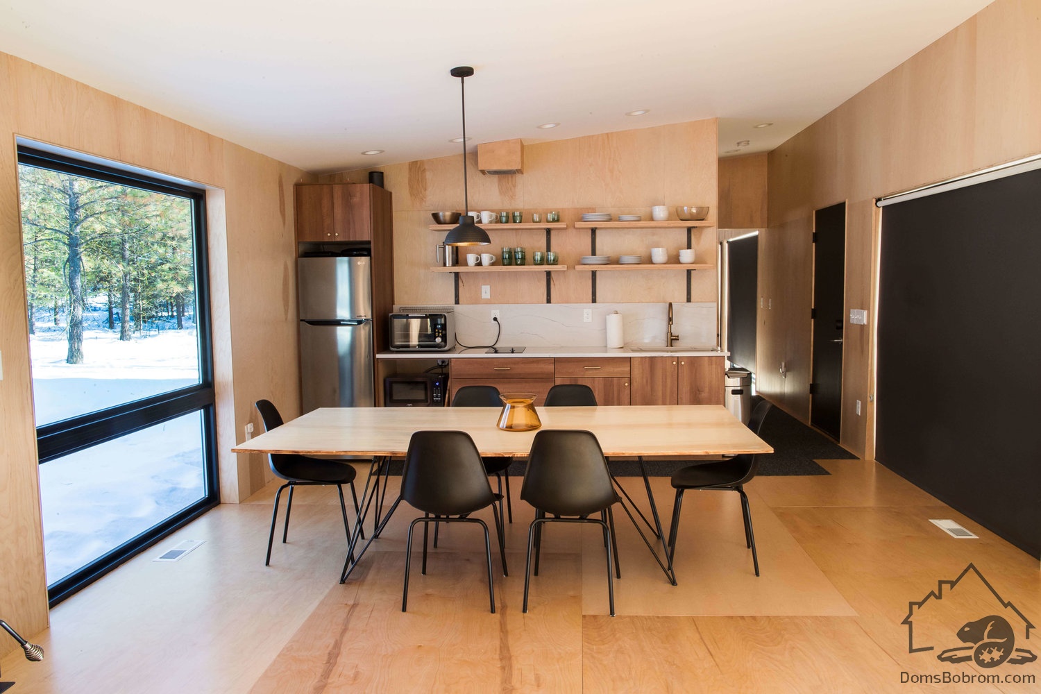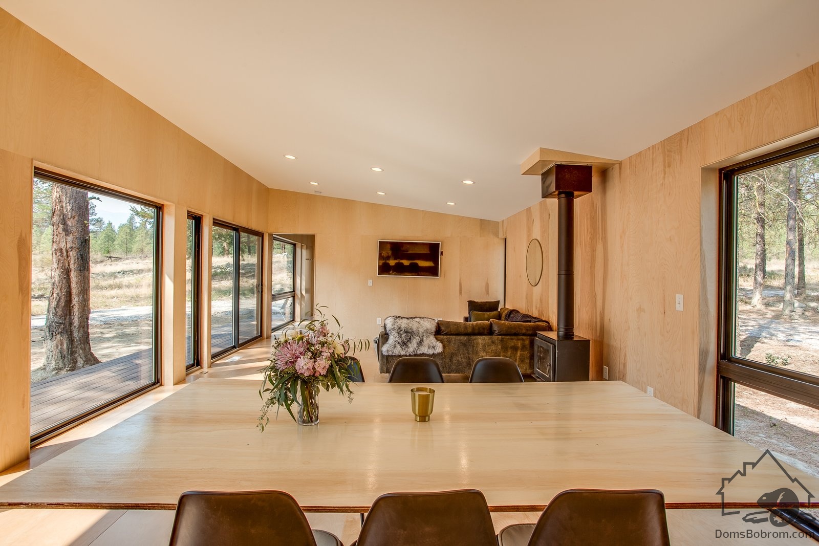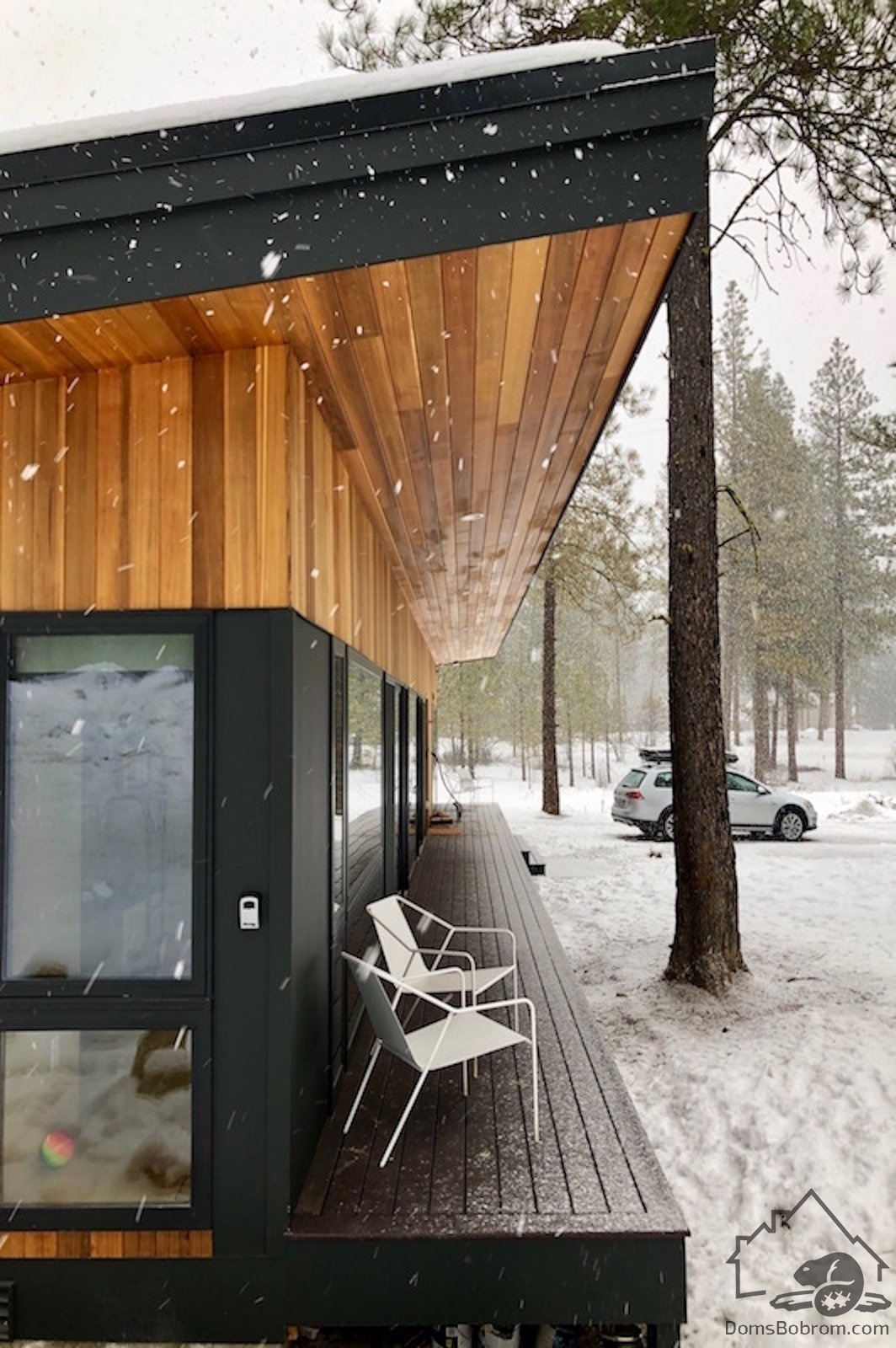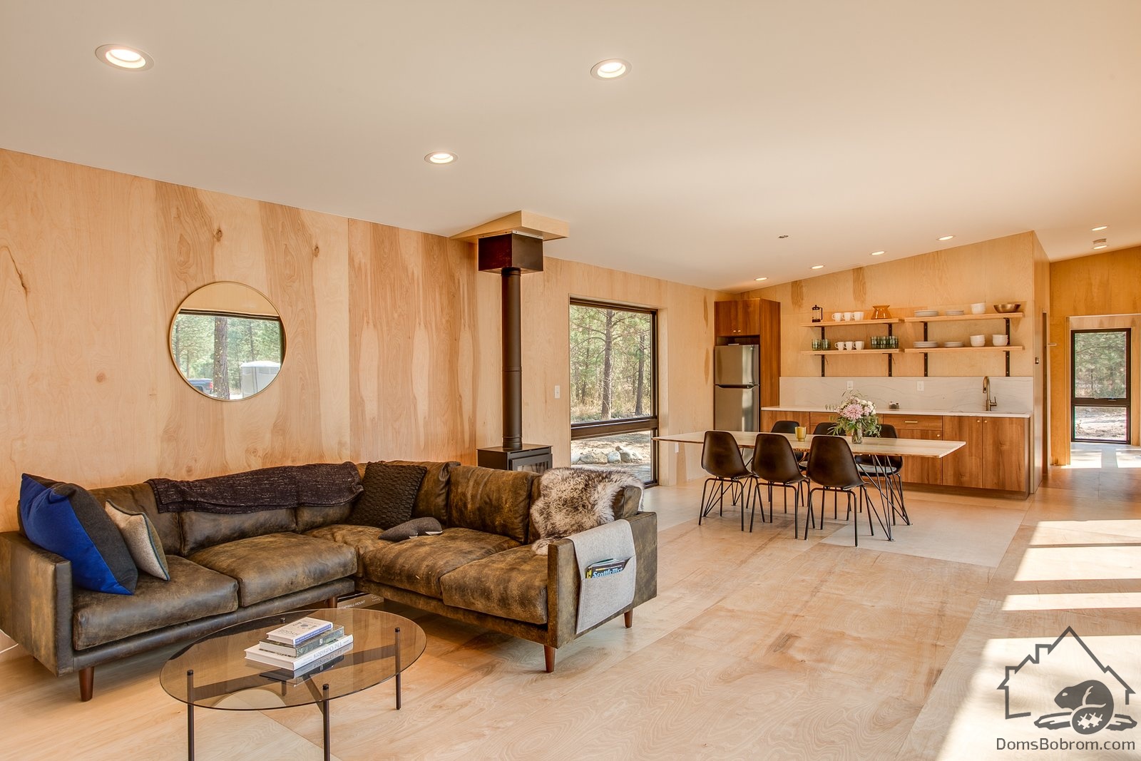 Этот уютный коттедж Hideout Cabin спроектирован One Way Construction NW и имеет открытую и функциональную планировку с современными удобствами. Открытая гостиная, столовая и кухня разделяют центральное пространство. Большие окна выходят на окружающий пейзаж и пропускают много естественного света.