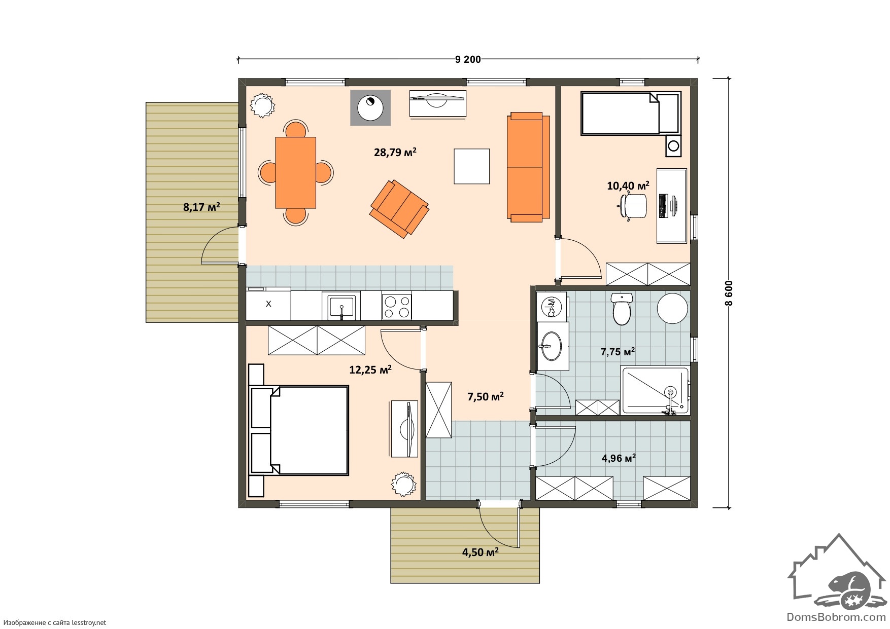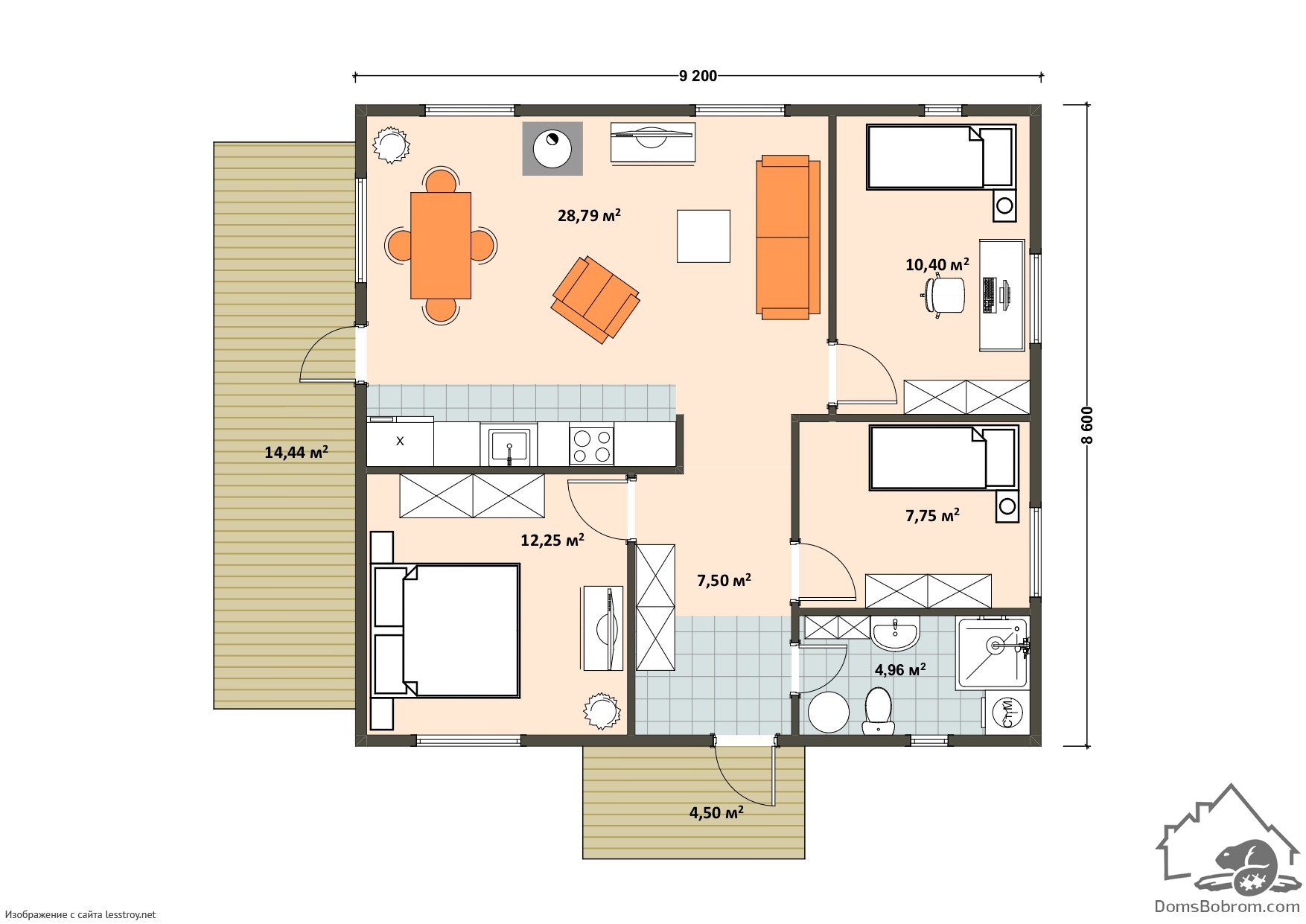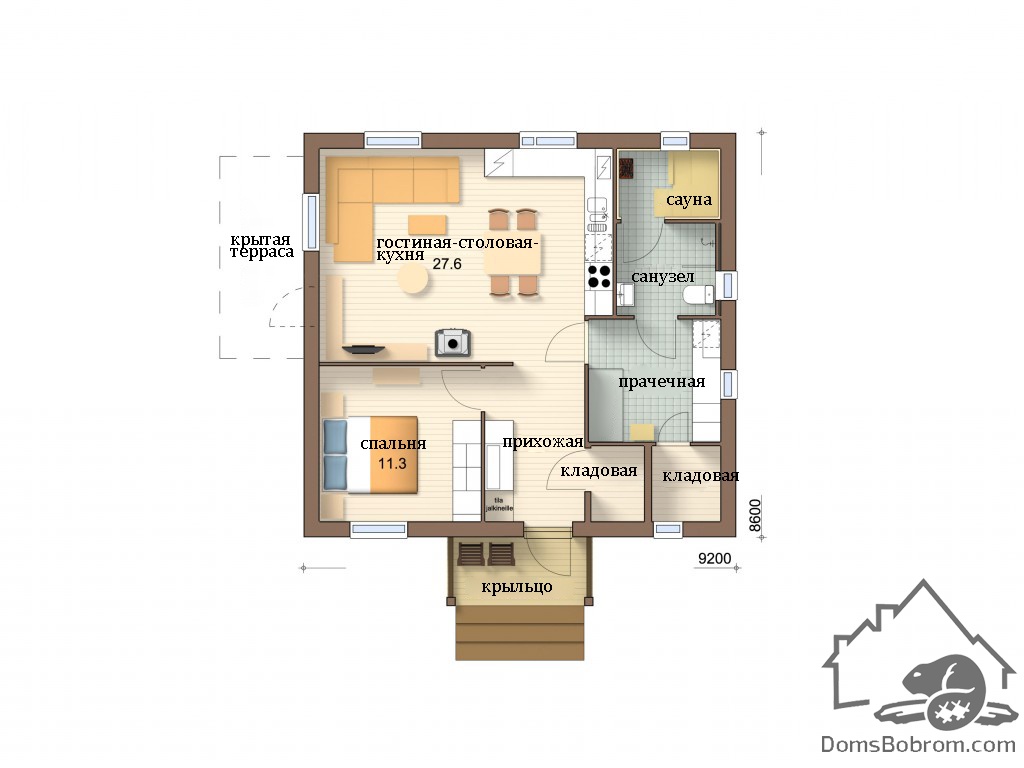 Размер дома 9,2 м х 8,6 м