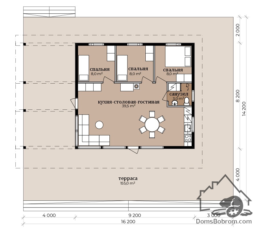 Размер дома 12 м х 8 м