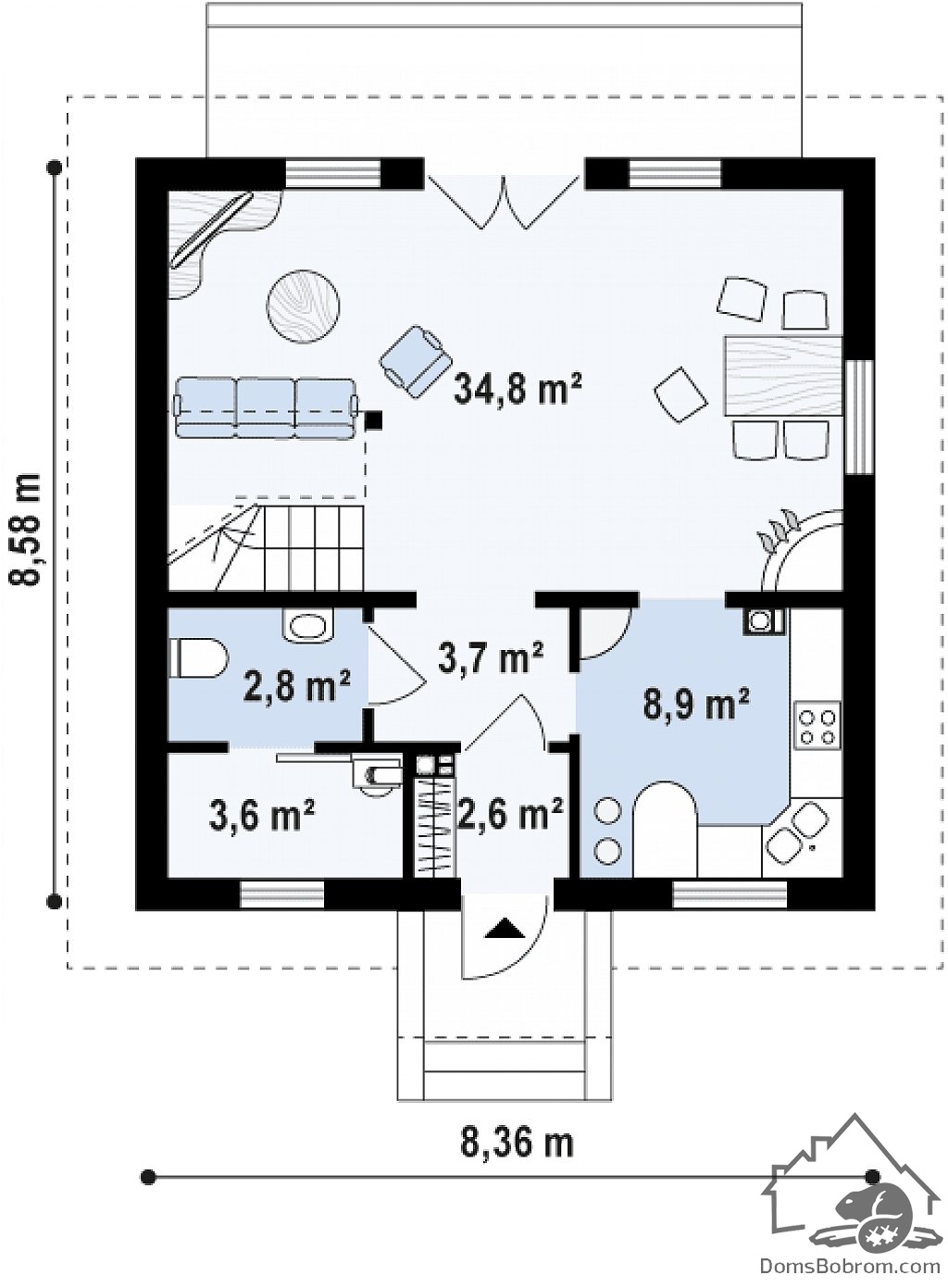 Размер дома 8,4 м х 8,6 м