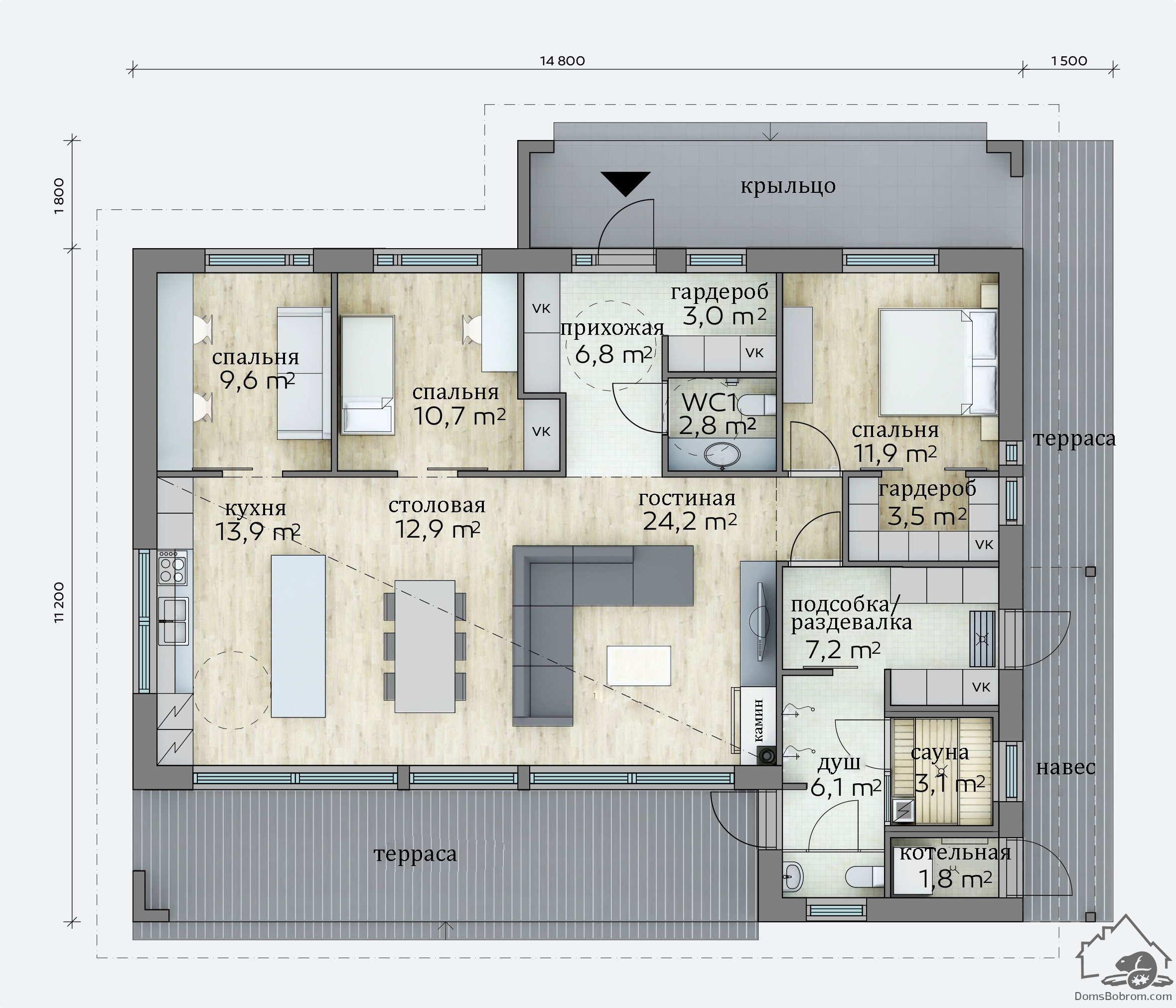 - Каркас:Каркас дома из сухой строганой доски камерной сушки: силовой каркас, хедеры, ригеля, обвязки каркаса, стропильная система, перекрытия, перегородки.