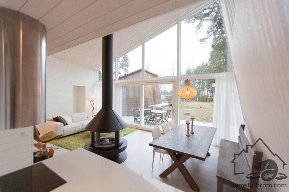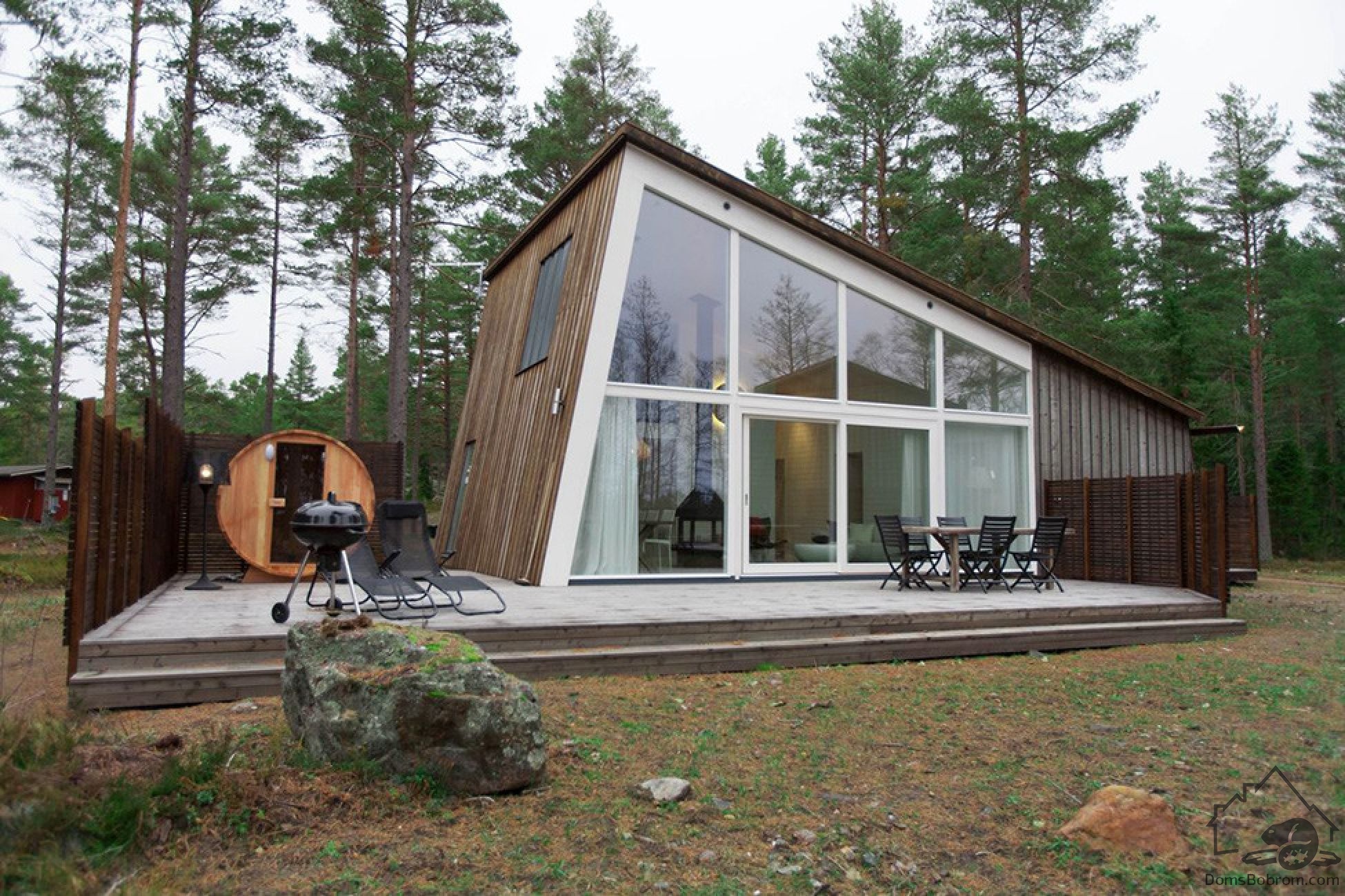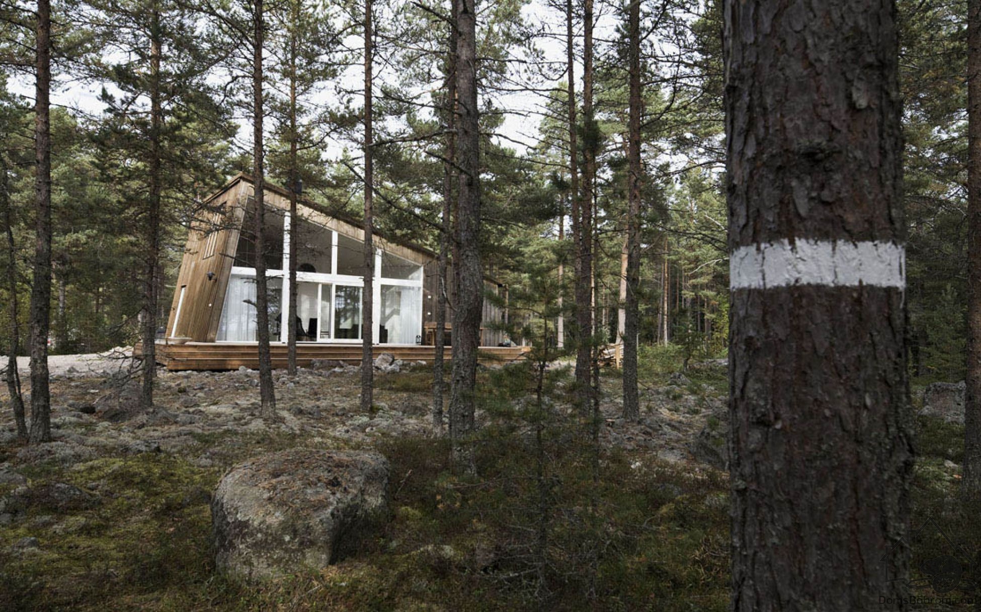 Дом Laguna построен по проекту стокгольмских архитекторов Матса Эдлунда и Хенриэтты Палмер и своими очертаниями напоминает палатку. У дома простая форма с односкатной крышей и слегка наклонной стеной. Внутри светло и просторно. Гостиная, кухня, столовая и антресоль спроектированы в той части дома, где кровельный скат набирает максимальную высоту, спальни находятся в зоне с невысокими потолками. Просторные комнаты не перегружены предметами, но в доме есть колоритные предметы мебели, выполненные из дерева.