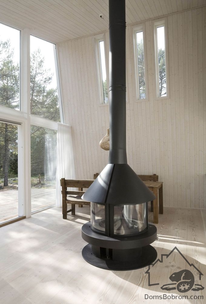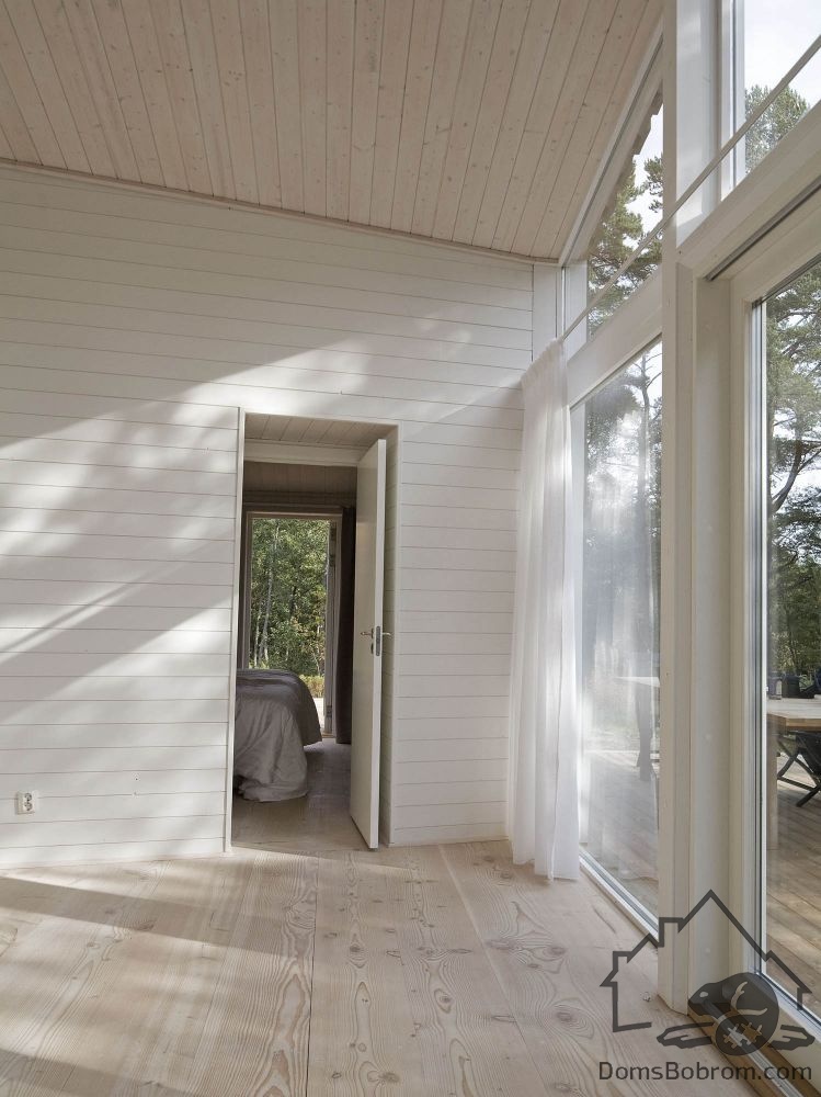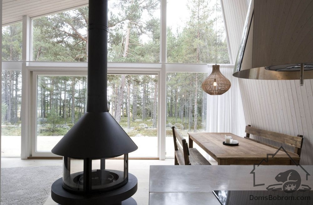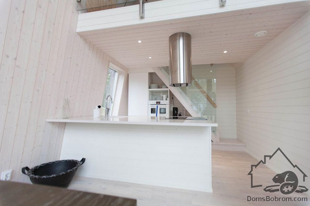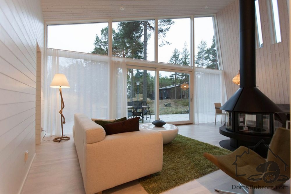 Дом Laguna построен по проекту стокгольмских архитекторов Матса Эдлунда и Хенриэтты Палмер и своими очертаниями напоминает палатку. У дома простая форма с односкатной крышей и слегка наклонной стеной. Внутри светло и просторно. Гостиная, кухня, столовая и антресоль спроектированы в той части дома, где кровельный скат набирает максимальную высоту, спальни находятся в зоне с невысокими потолками. Просторные комнаты не перегружены предметами, но в доме есть колоритные предметы мебели, выполненные из дерева.