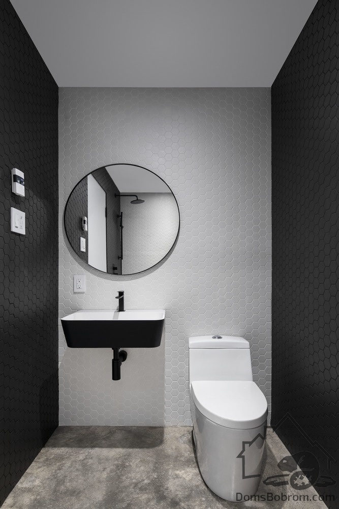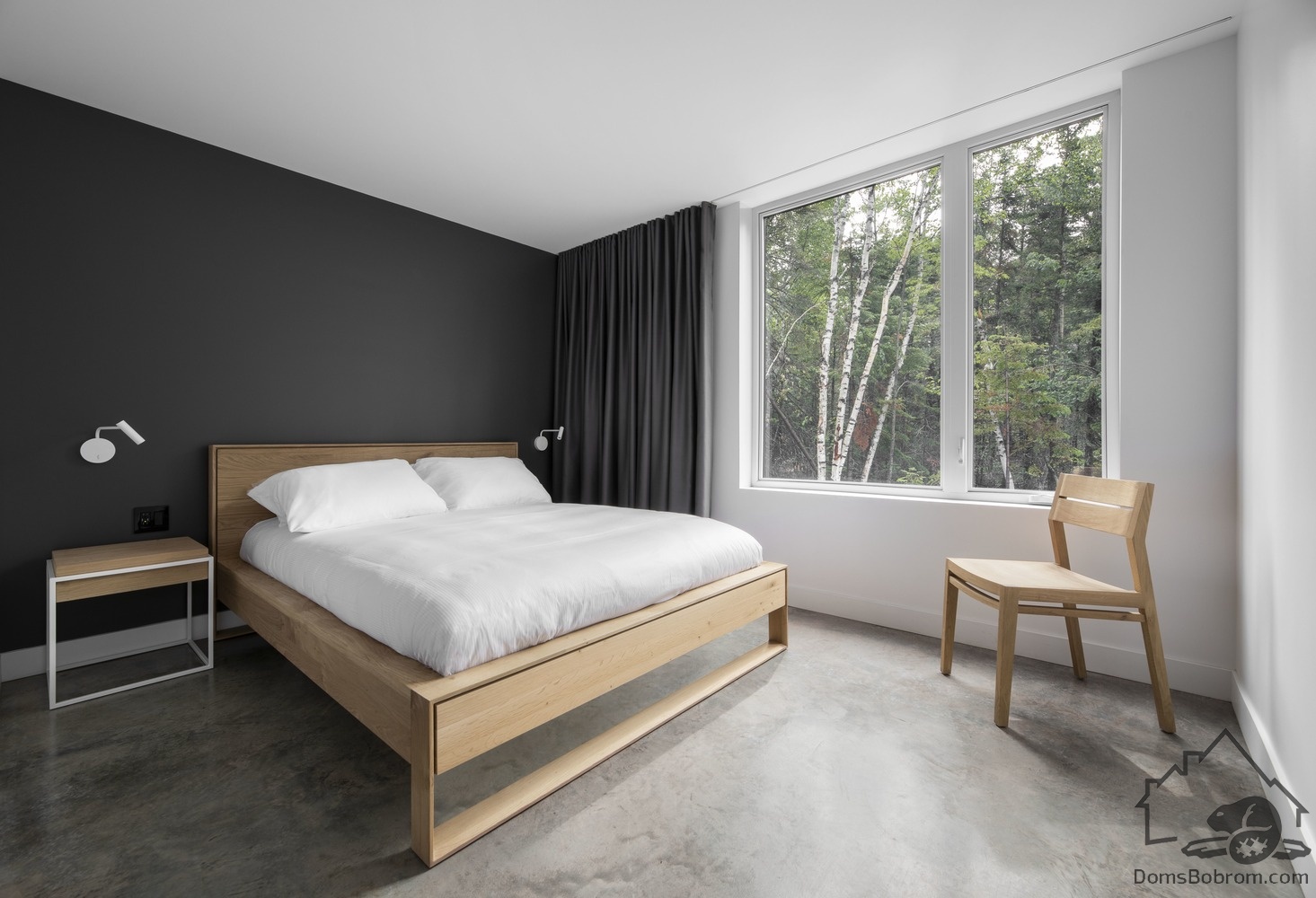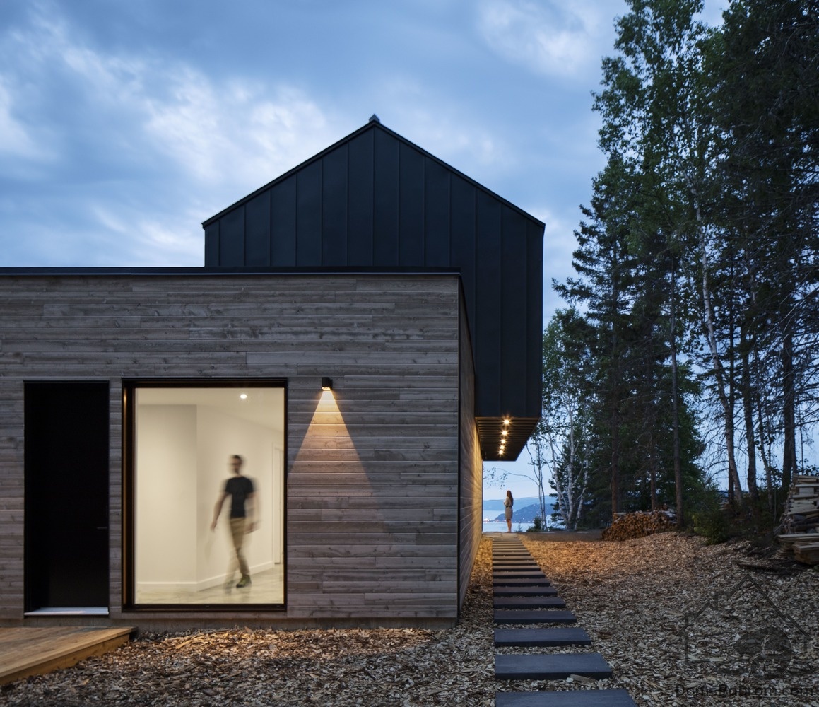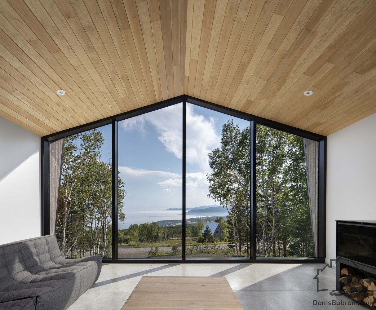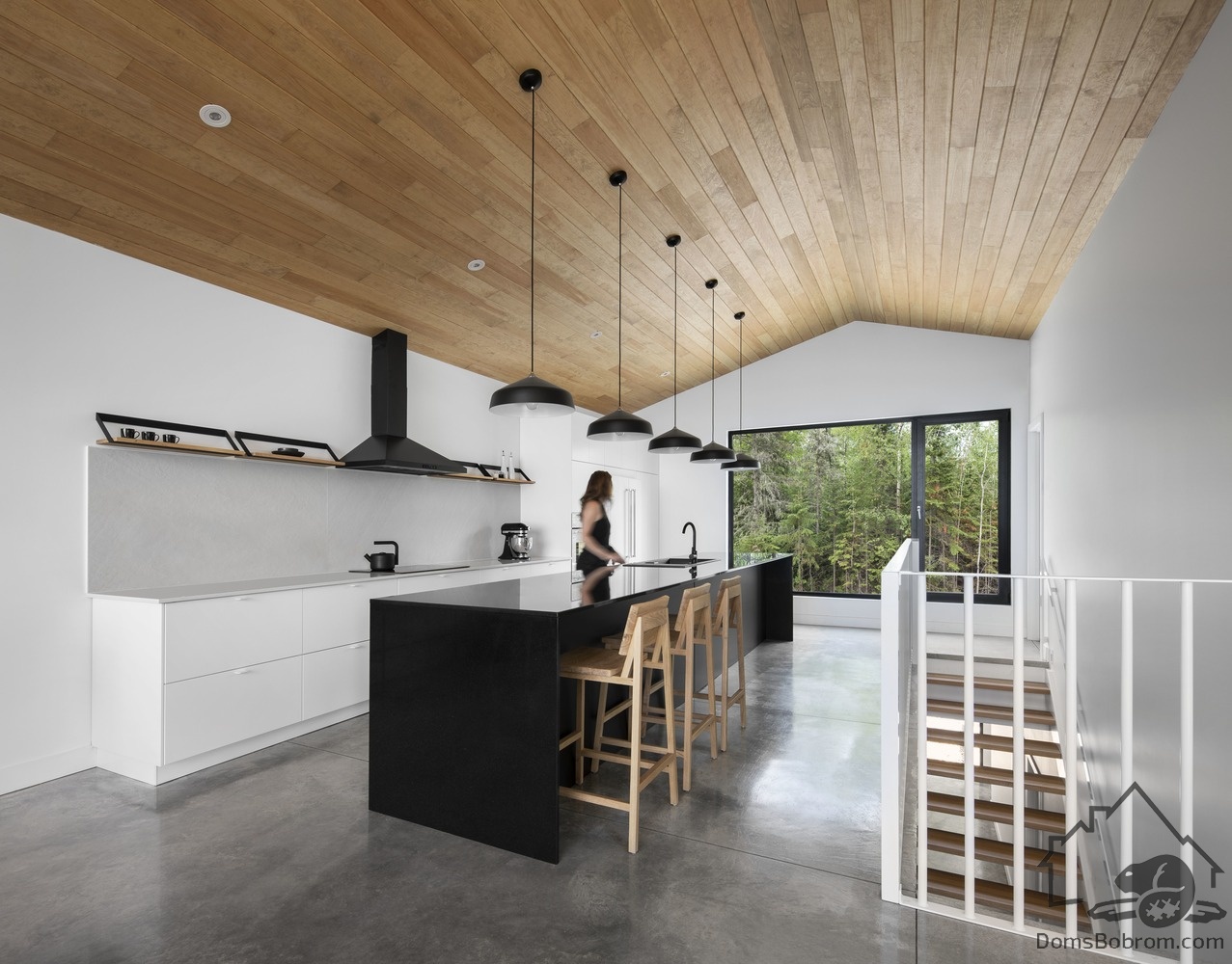 Нейтральная цветовая палитра, ограниченная черным, белым и деревом, подчеркивает функциональность интерьера и красоту окружающей среды. Дом буквально излучает ощущение уюта и покоя.