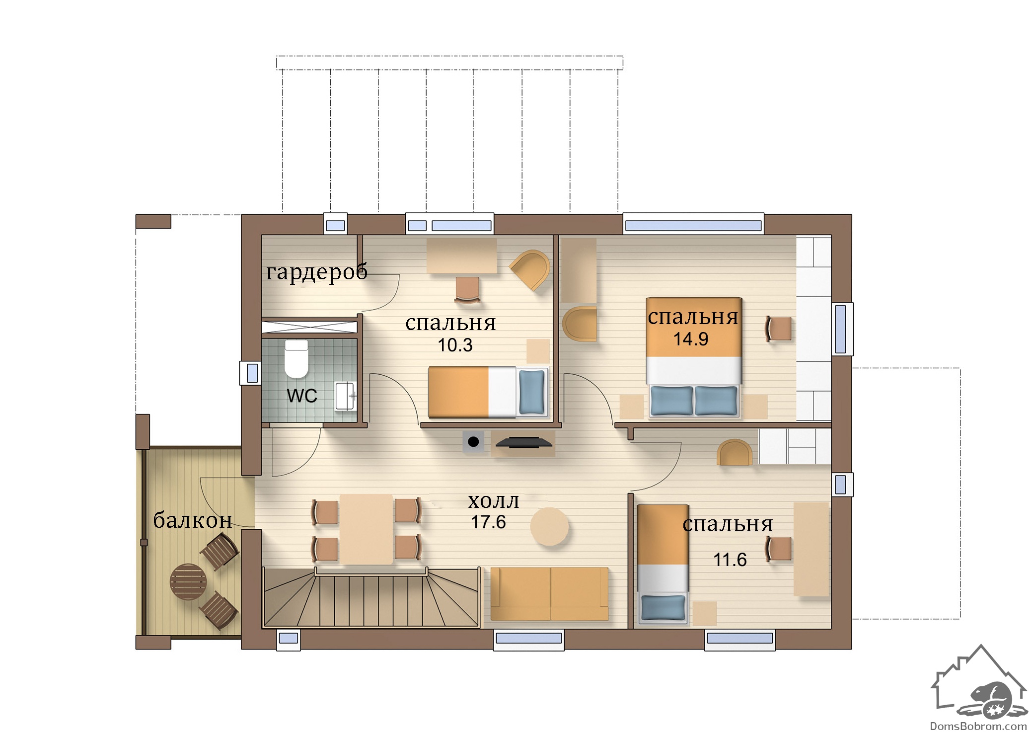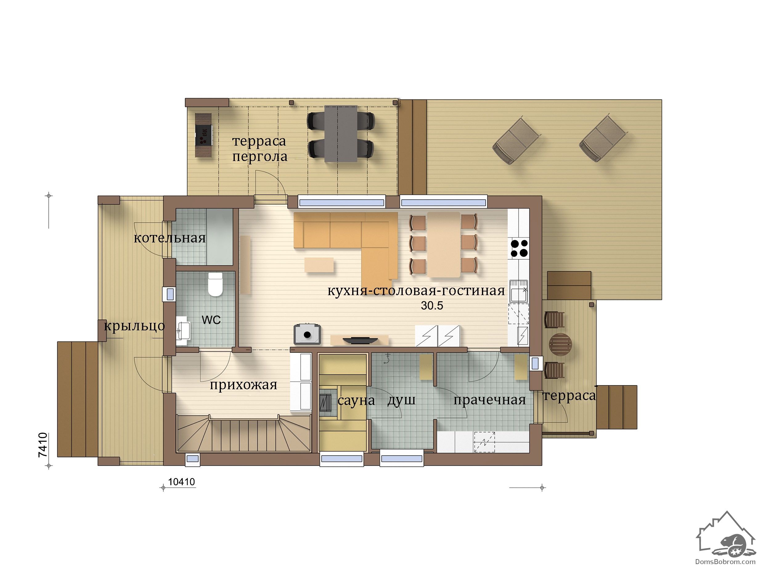 Размер дома 10,4 м х 7,4 м