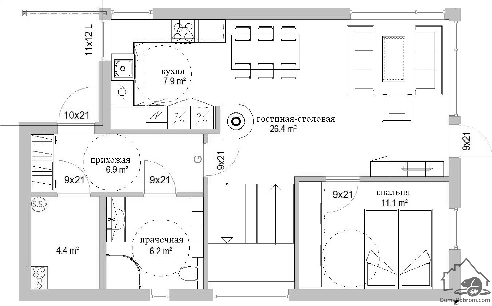 Размер дома 7,5 м х 11,4 м
