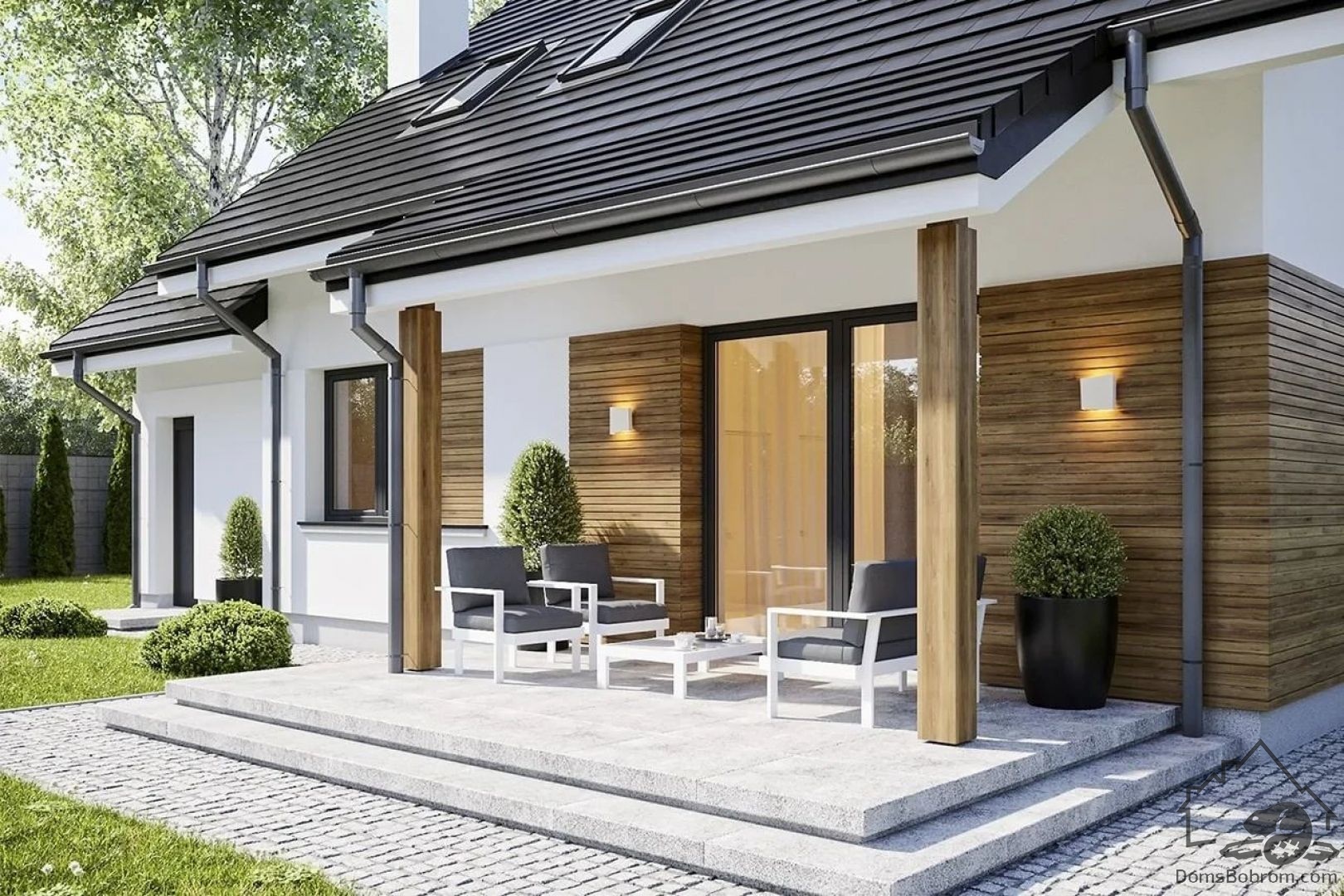 Дом Narciss - это современный дом для семьи с красивым дизайном и интерьером. У дома простая компактная форма. Симметричный пропорциональный фасад имеет входную аркаду по оси симметрии со сплошной дверью с фрамугой, а над ней нависает окно с балконом. Со стороны сада фасад разнообразен крышей террасы и широкими раздвижными балконными дверями, открывающими гостиную на террасу и в окружающий сад. Со стороны сада фасад выделяется крышей террасы и широкими раздвижными балконными дверями. Балконные двери позволяют выйти из гостиной на террасу и в сад.