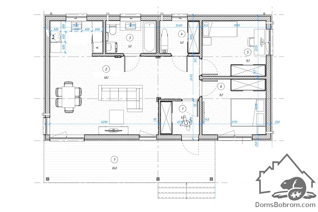 - Каркас:Каркас дома из сухой строганой доски камерной сушки: силовой каркас, хедеры, ригеля, обвязки каркаса, стропильная система, перекрытия, перегородки.