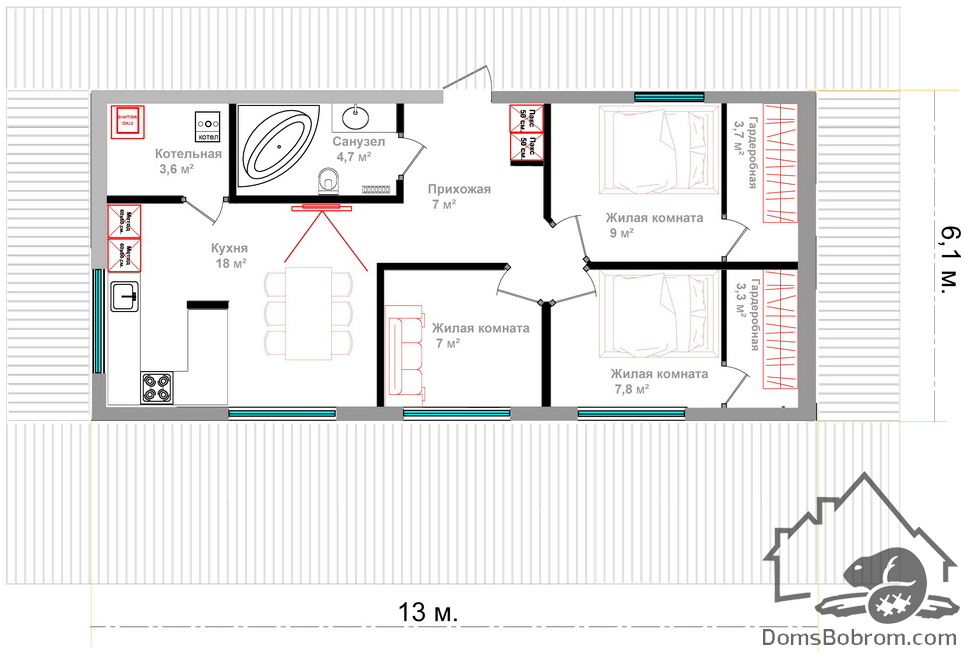 Размер дома 13 м х 6 м