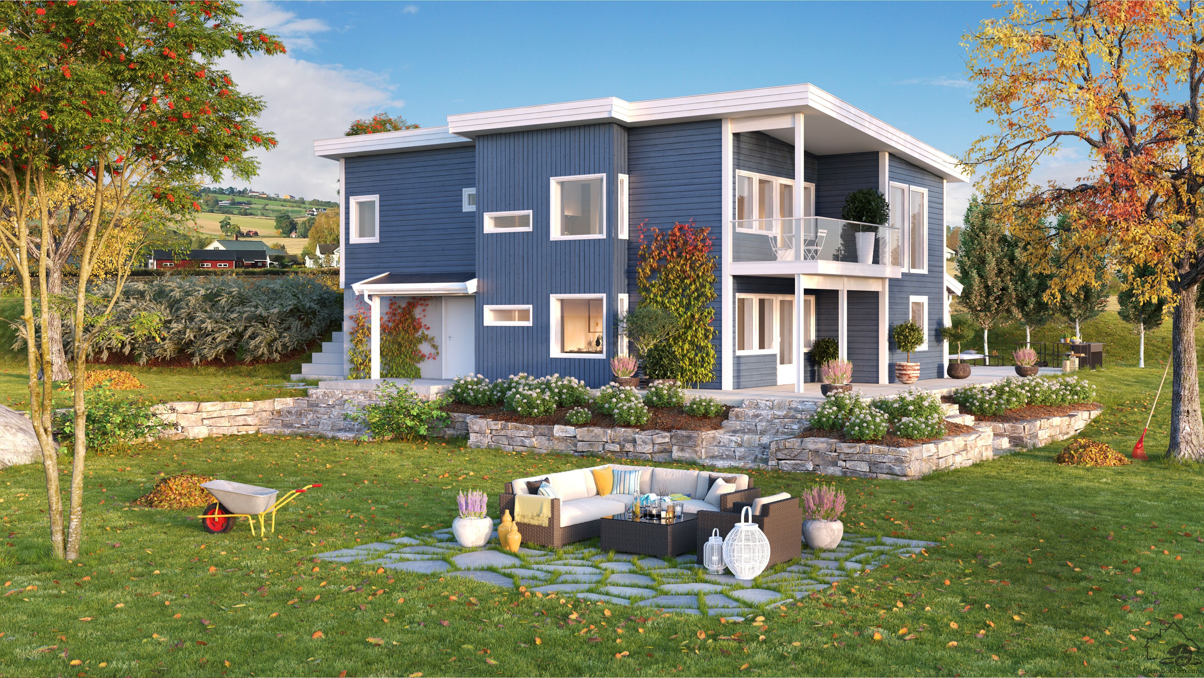 Дом Oro - это современный дом с четкими линиями и разумными решениями. Планировку дома можно менять по мере необходимости. В базовом решении он имеет 4 спальни, 2 просторные гостиные и открытую кухню, которая располагает к общественным встречам. Oro спроектирован с учетом наклонного участка, но может быть легко изменен под ровный.