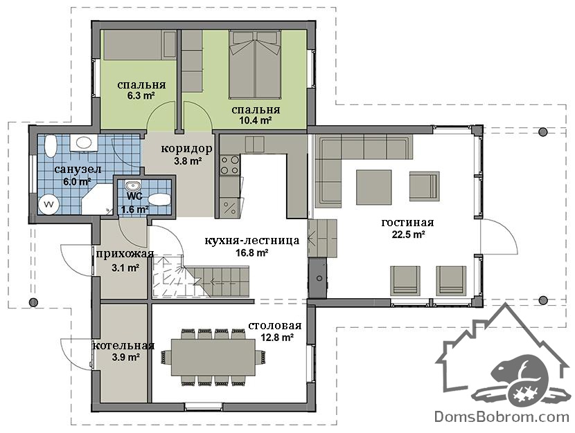 Дом Orvos - это уютный дом с гостиной и жилой зоной на уровне пола. Гостиная и столовая разделены кухней и расположенным в центре камином. Это обеспечивает функционально разделенную, но в то же время просторную и открытую планировку. В доме Orvos 4 спальни и 3 гостиные, ванная комната и отдельный гостевой туалет.