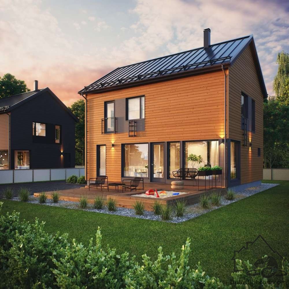 - Каркас:Каркас дома из сухой строганой доски камерной сушки: силовой каркас, хедеры, ригеля, обвязки каркаса, стропильная система, перекрытия, перегородки.