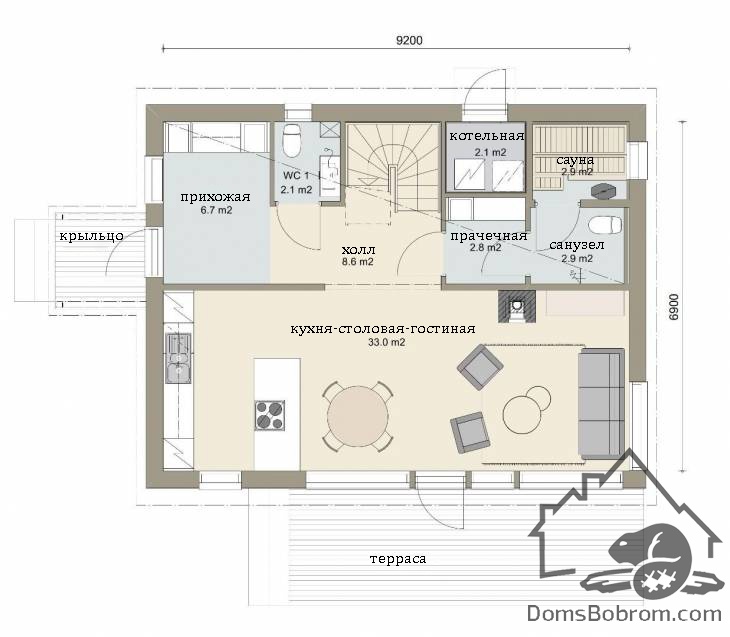 Дом Озеры представляет собой дом для одной семьи из 3-5 человек. На первом этаже расположены общие зоны и хозяйственные зоны. На втором - приватная зона спален.