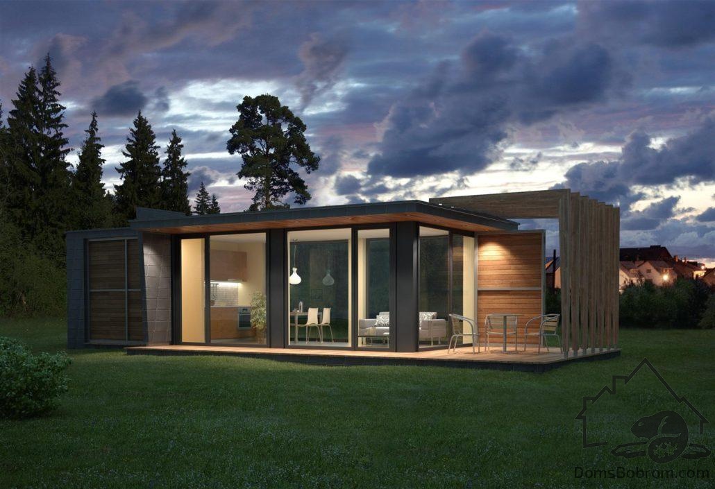 Дом Парус - это современный, стильный жилой дом, который может быть построен как в варианте 35 м2, так 52 м2 и больше. Дом отлично подойдет для узких участков. Панорамные окна дают максимум естественного освещения и впускают природу в дом.