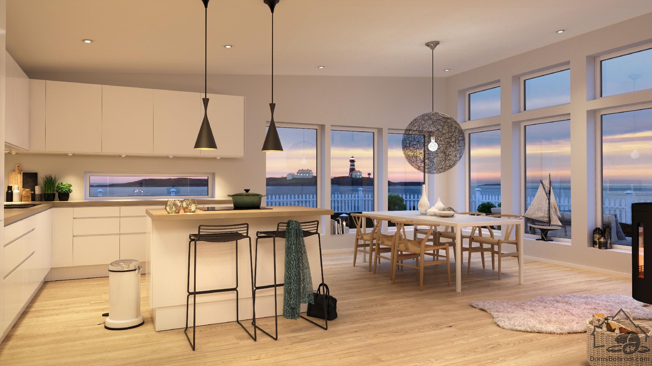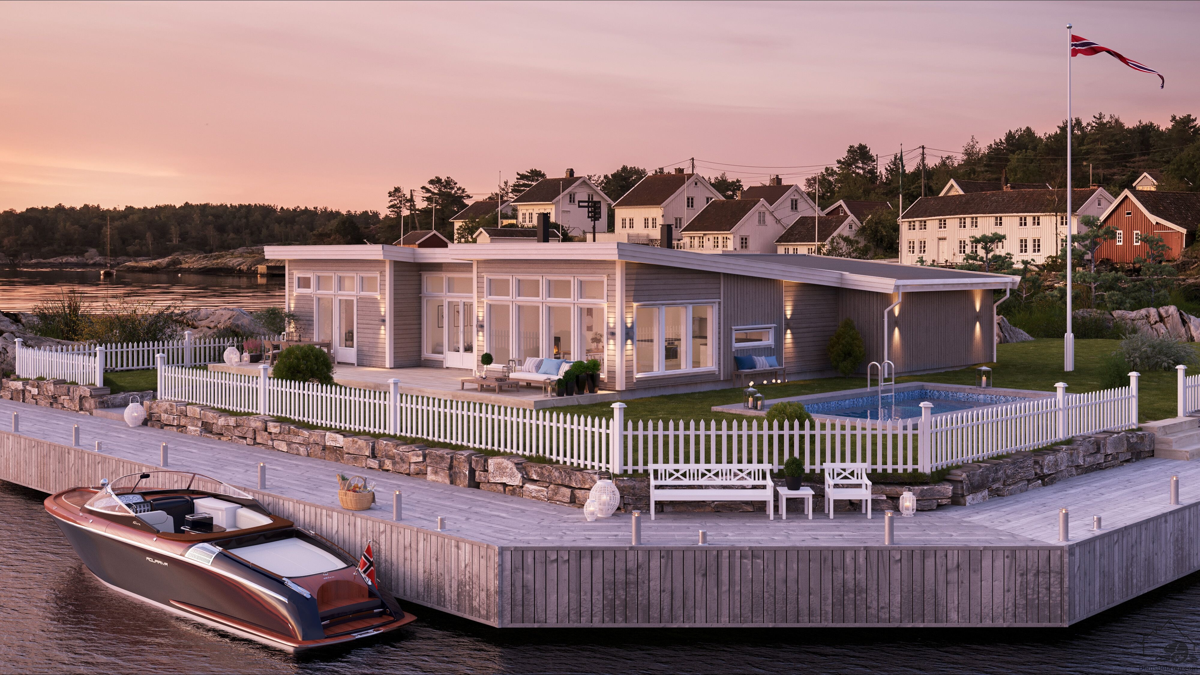 Дом Poseidon похож на американский пляжный домик с открытыми фасадами и высокими пологими потолками. В таком доме вы сможете насладиться природой в гостиной и на кухне, в главной спальне. Большие гостиные в сочетании с внутренней высотой потолка с покатыми потолками и панорамными окнами усиливают впечатление легкого и просторного дома. В доме есть спальное крыло с 2 отдельными ванными комнатами и много места для хранения вещей. Встроенный гараж добавляет комфорт и удобство в жизнь владельцев.