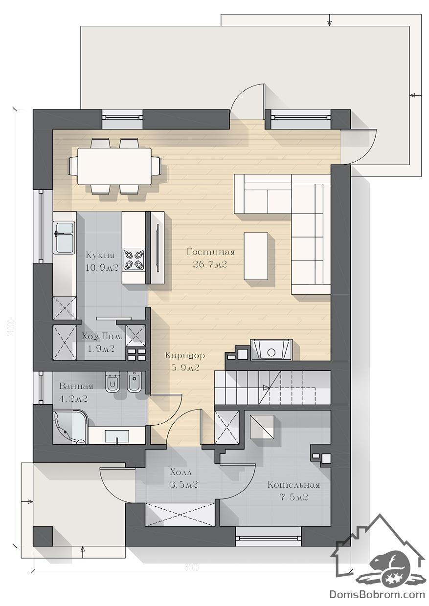 Дом Posti - это проект двухэтажного дома в современном стиле. Рационально спроектированный интерьер обеспечит комфортную жизнь для семьи из 4х человек. Лаконичную форму подчёркивает четырёхскатная крыша и выверенная отделка фасада. Дом очень вместительный, функциональный и подходит даже для совсем небольших участков.