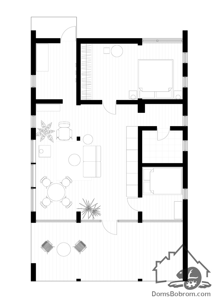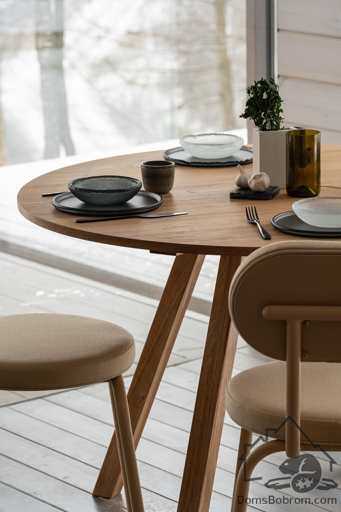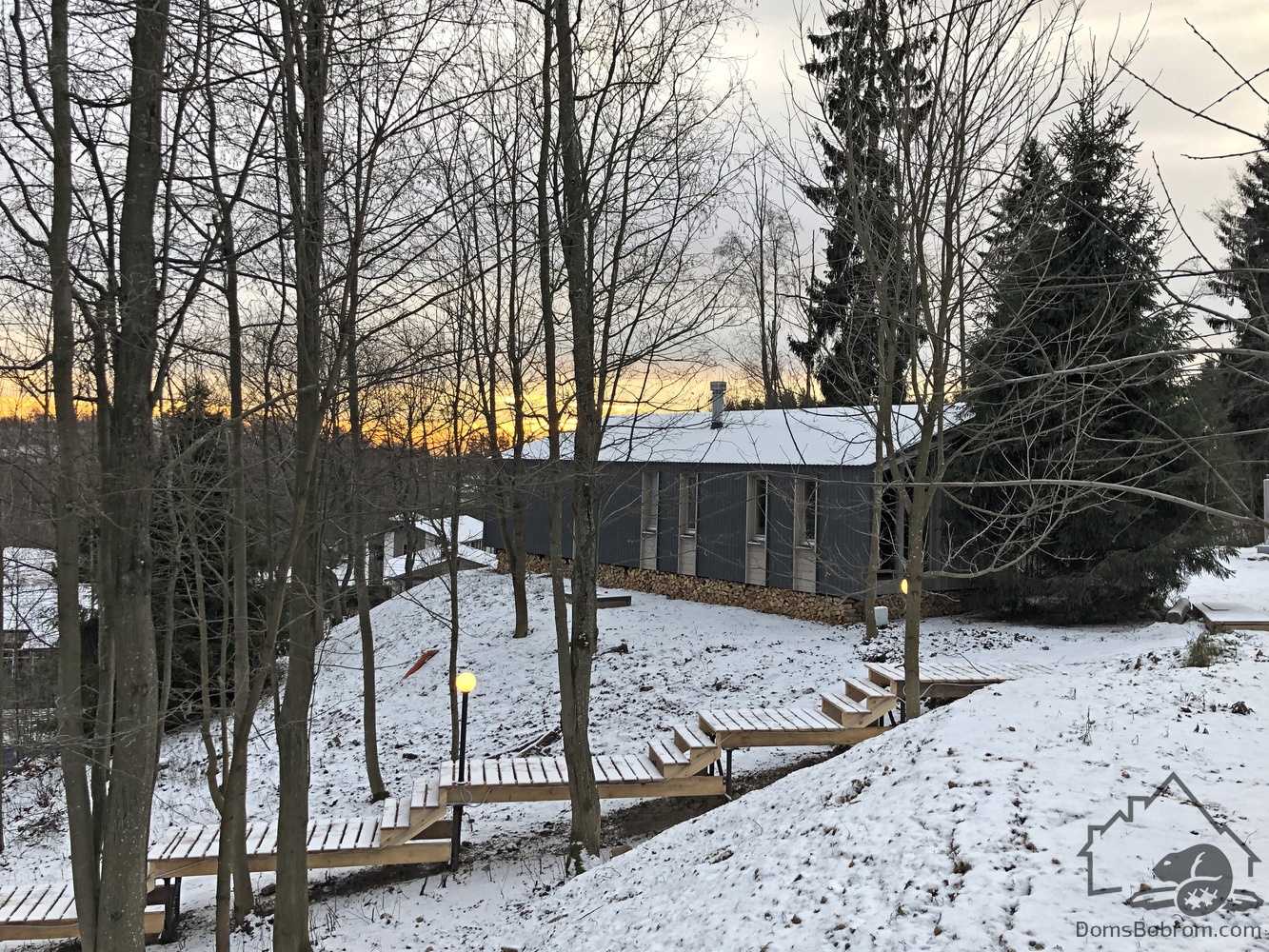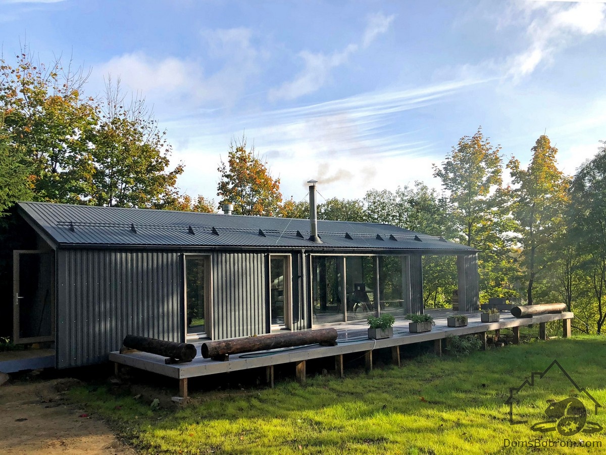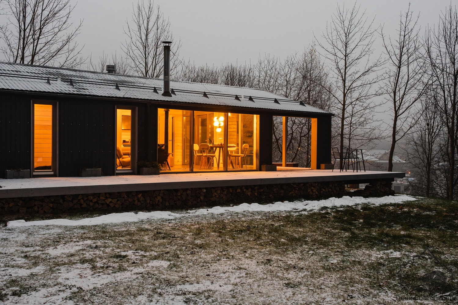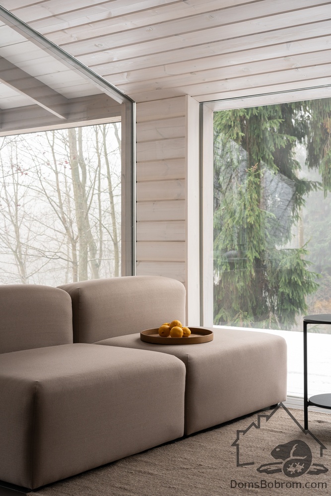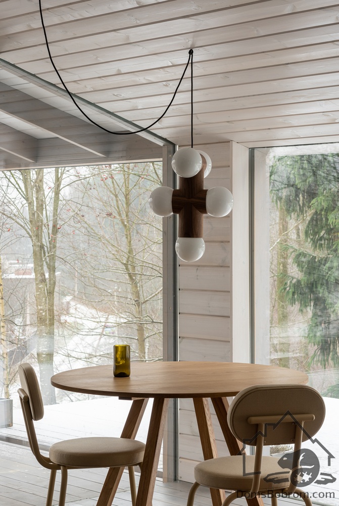 Проект реализован в 2019 году в поселке Порошкино под Санкт-Петербургом, Россия. На небольшой площади в 70 квадратных метров в доме оборудованы 2 спальни, просторная студия-кухня с панорамным остеклением, прихожая, санузел и большая веранда. Для создания интерьера, воплощающего образ современного русского жилища и отражающего современную культуру и локальный контекст Петербурга, были приглашены санкт-петербургские дизайнеры (DELO DESIGN).