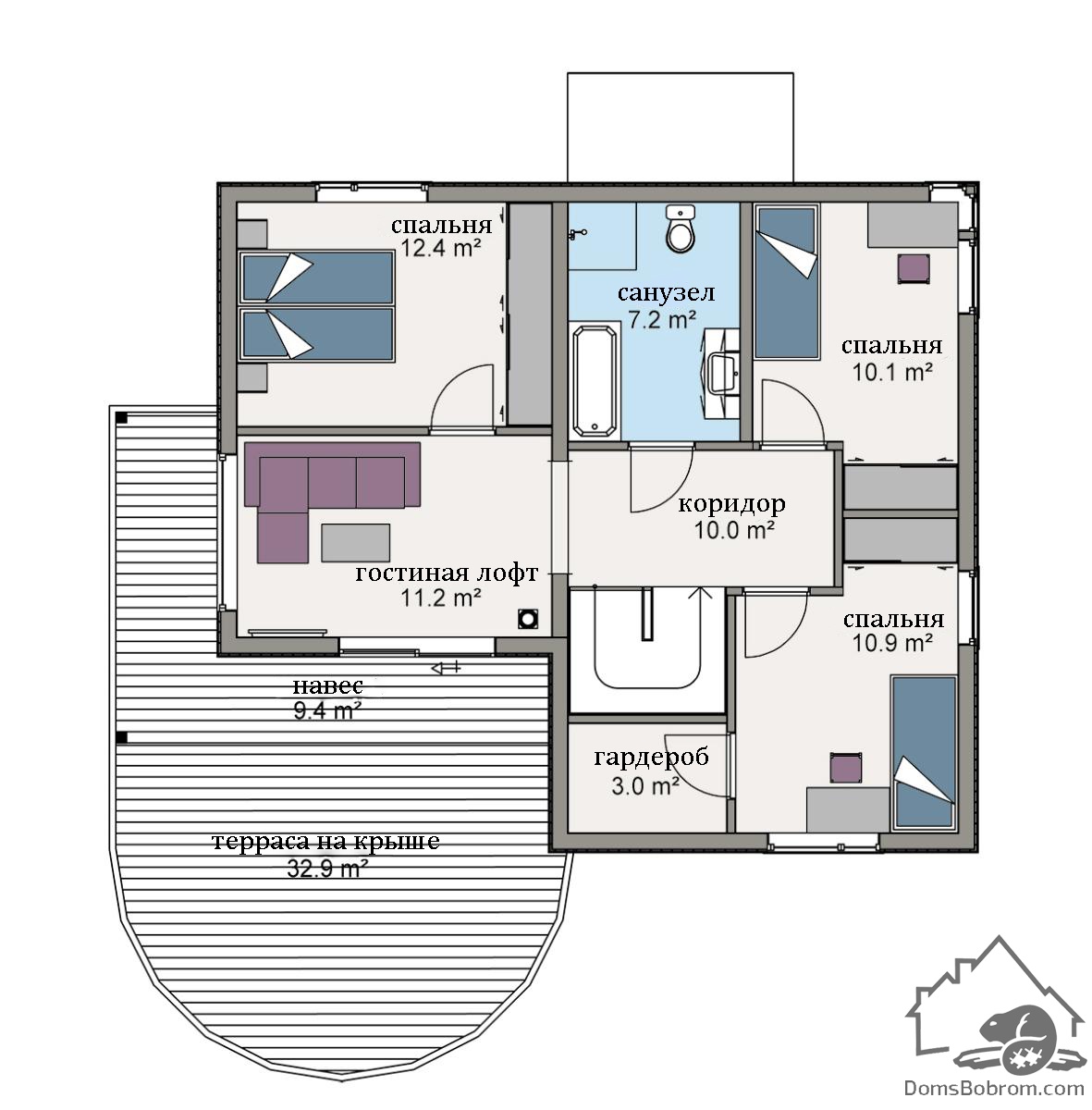 Размер дома 11,4 м х 13,3 м