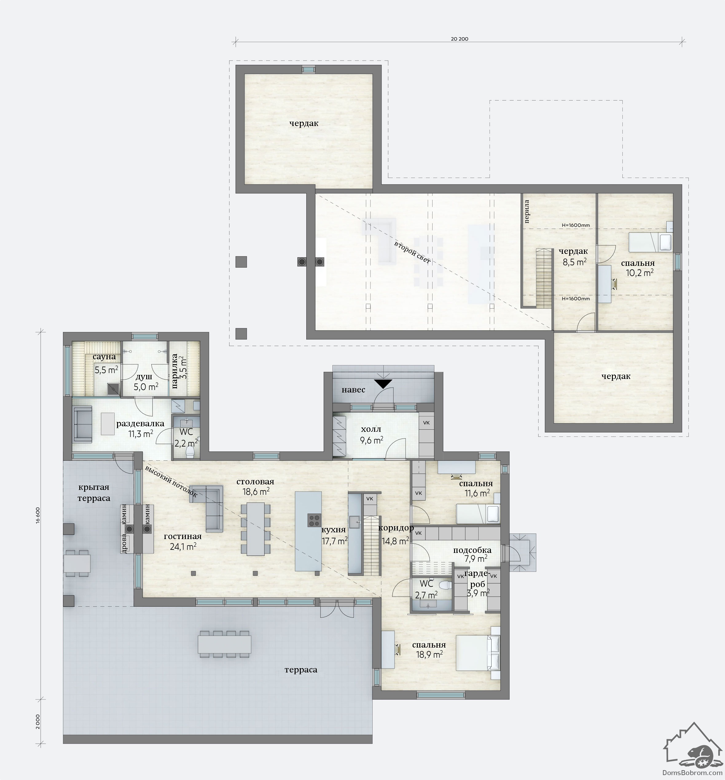 Размер дома 20,2 m x 18,6 m