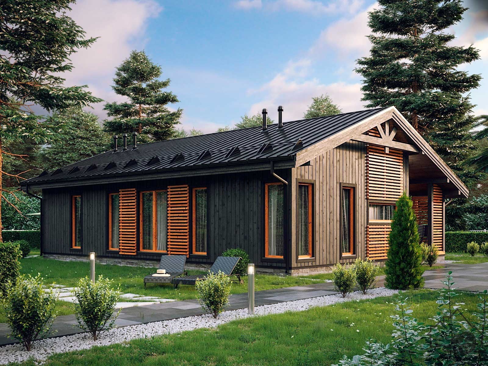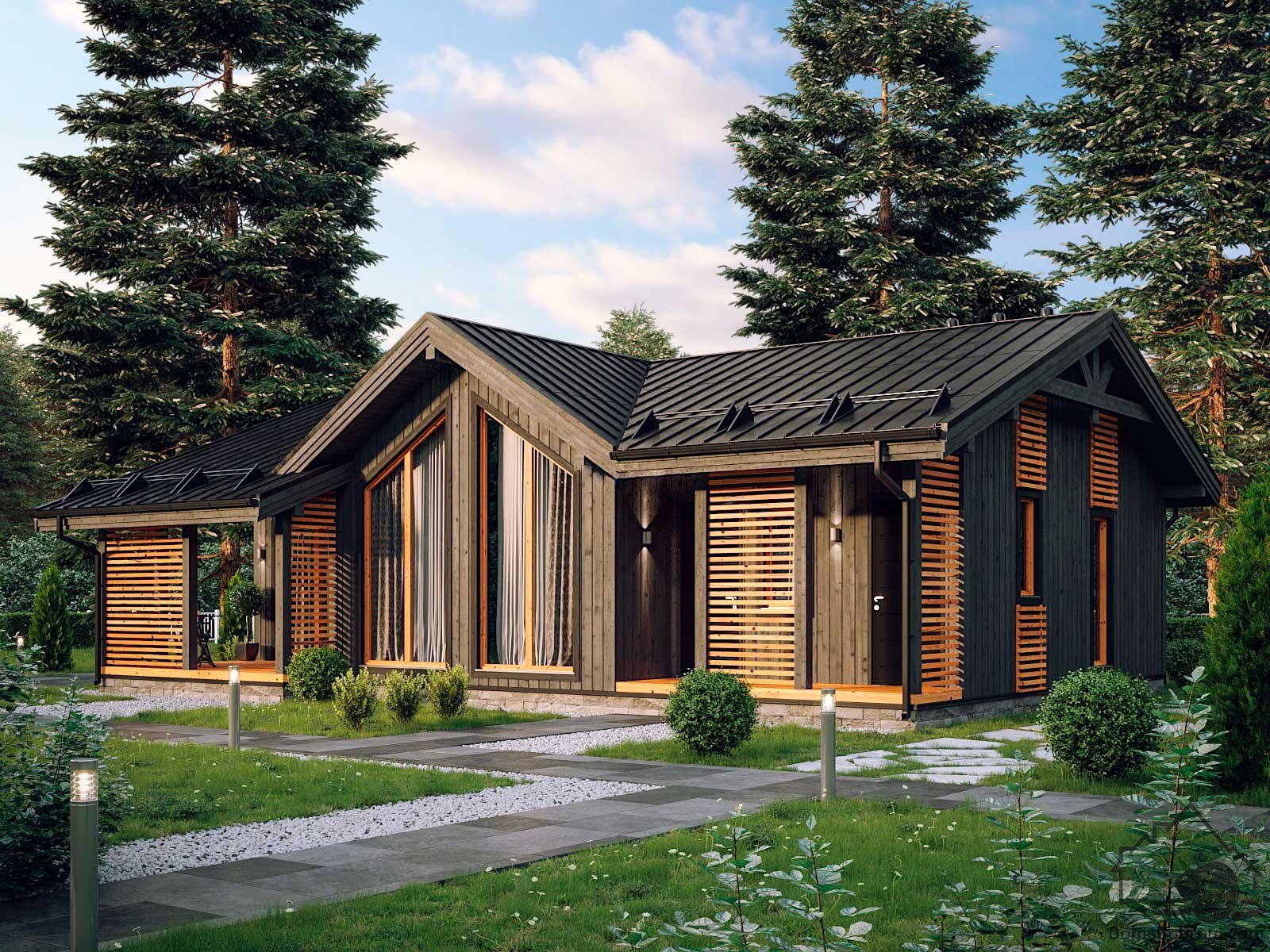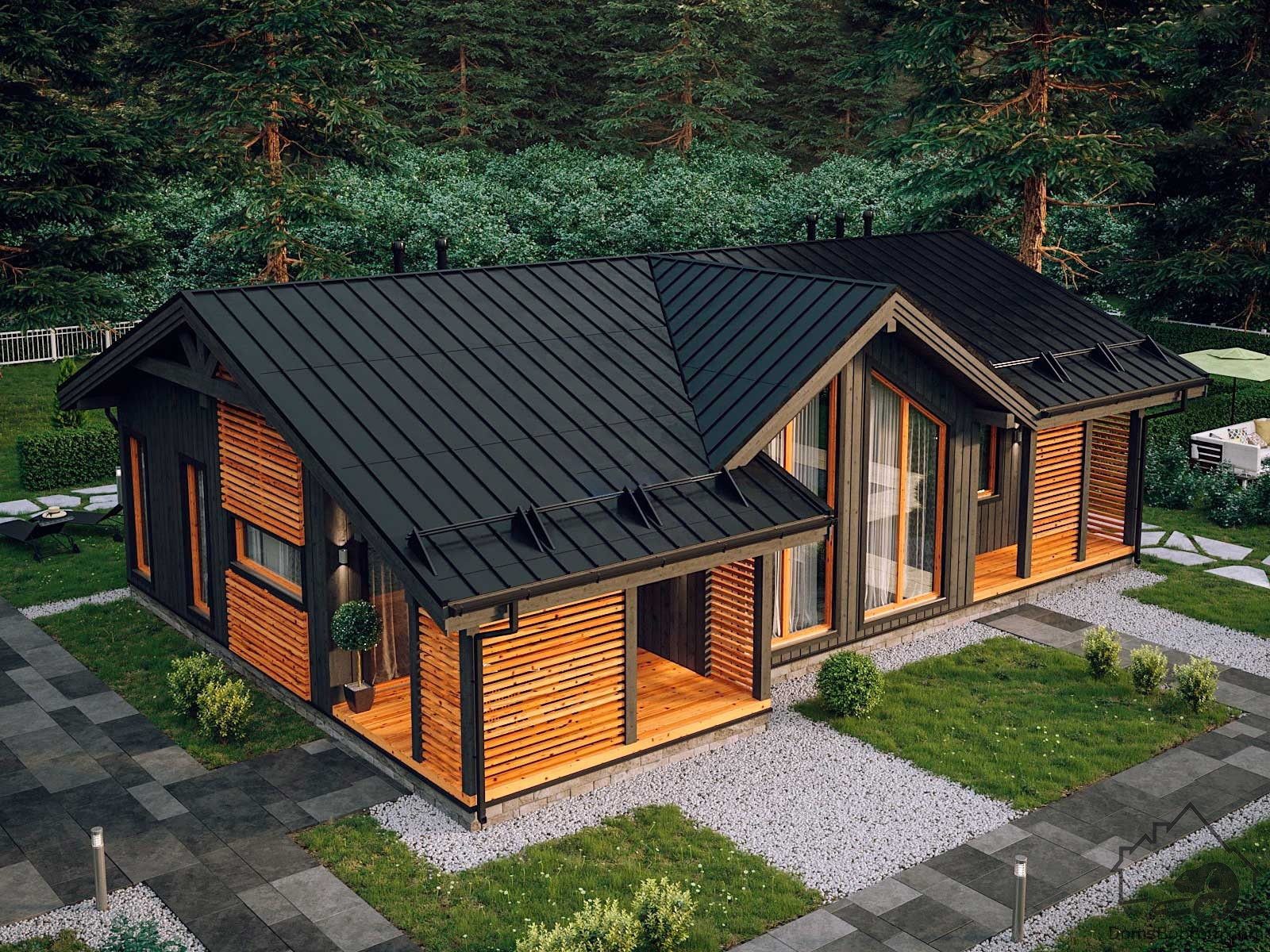 Дом Руза - это шикарный одноэтажный дом с высокими потолками и огромными окнами. Первое, что бросается в глаза, - это нестандартный экстерьер. Такое решение делает дизайн современным и органичным. Это не только красиво, но и практично. В гостиной всегда будет светло и комфортно. Кухня-гостиная занимает почти 40 квадратных метров, из неё можно попасть в три отдельные комнаты. На террасе вы сможете принимать шумную компанию друзей, она добавит комфорта в повседневную жизнь, вы точно оцените ее в слякотную погоду, а также если у вас есть дети. В дом Руза ведут два входа.