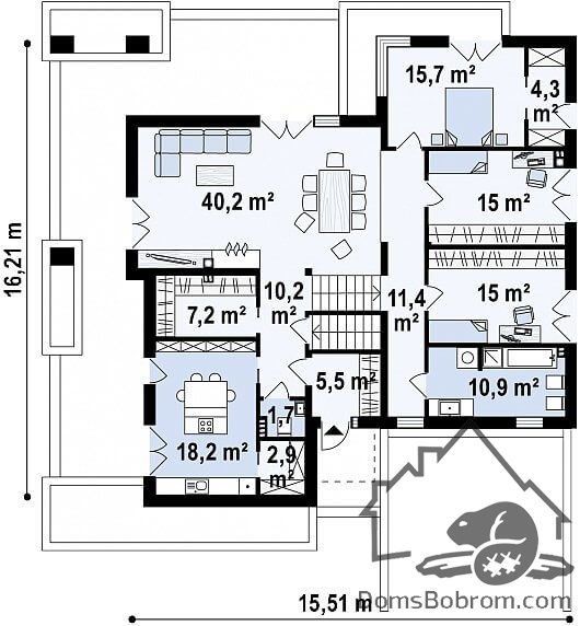 Размер дома 15,5 м х 16,2 м