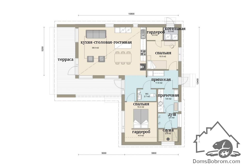 Размер дома 10,8 м х 12,4 м
