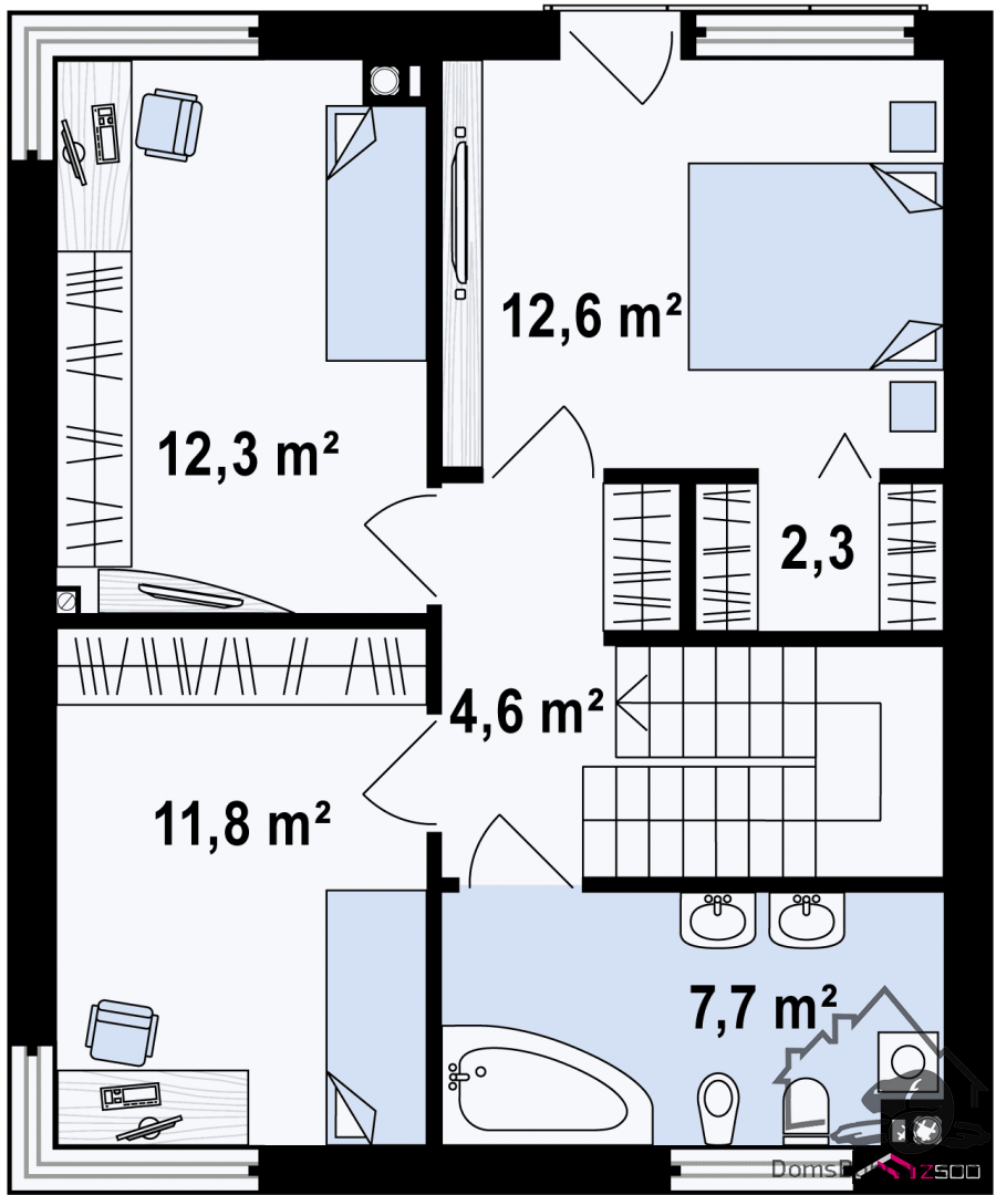 На втором этаже расположено три комнаты-спальни схожей площади, большая общая ванная комната. В главной спальне есть вместительный шкаф.