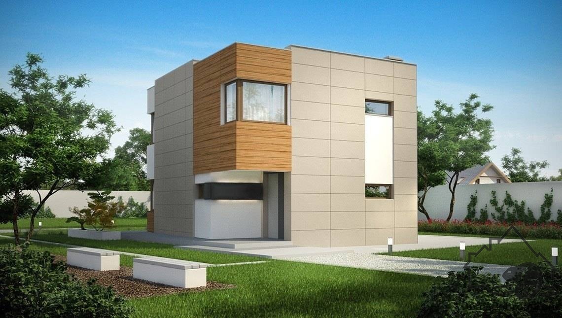 Дом Shorty - это функциональный двухэтажный дом простой энергосберегающей формы. Входная группа без опорной колонны и оформление фасадов определяют его современный облик. Убрав окно в гостиной на боковом фасаде, можно также разместить этот дом на более узком участке.