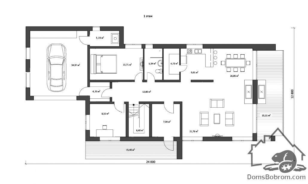Размер дома 24 м x 12,8 м