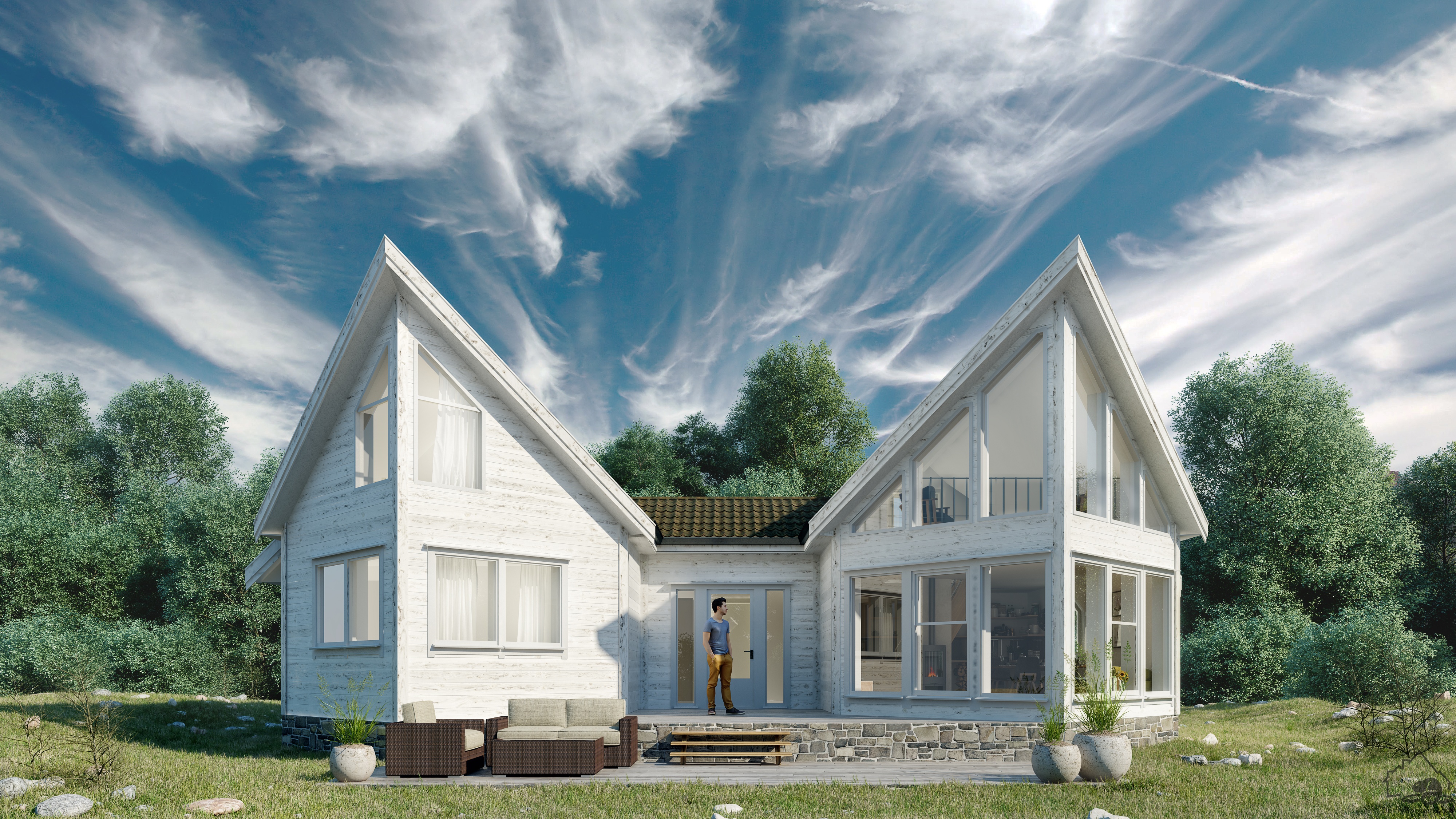 У дома Skip невероятные, эффектные фасады и продуманные планы этажей. Дом очень уютный, как внутри, так и снаружи. Элегантный стеклянный фасад гостиной способствует хорошему освещению и фантастическому виду из окна. План этажа функциональный, с отдельной гостиной. Дома Skip семейный, здесь 4 спальни, большая кухня и 2 гостиные объединены красивыми крытыми площадками на открытом воздухе.