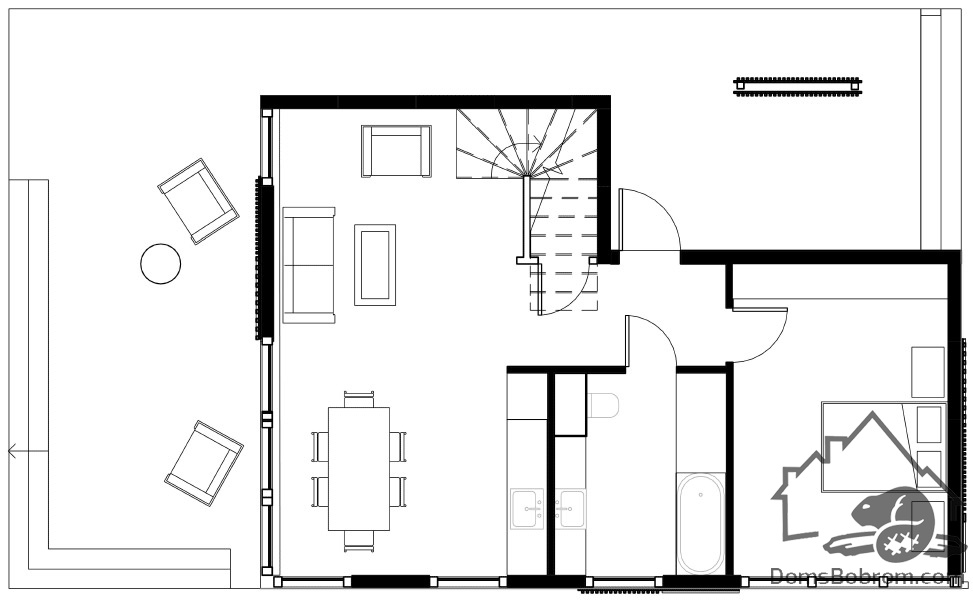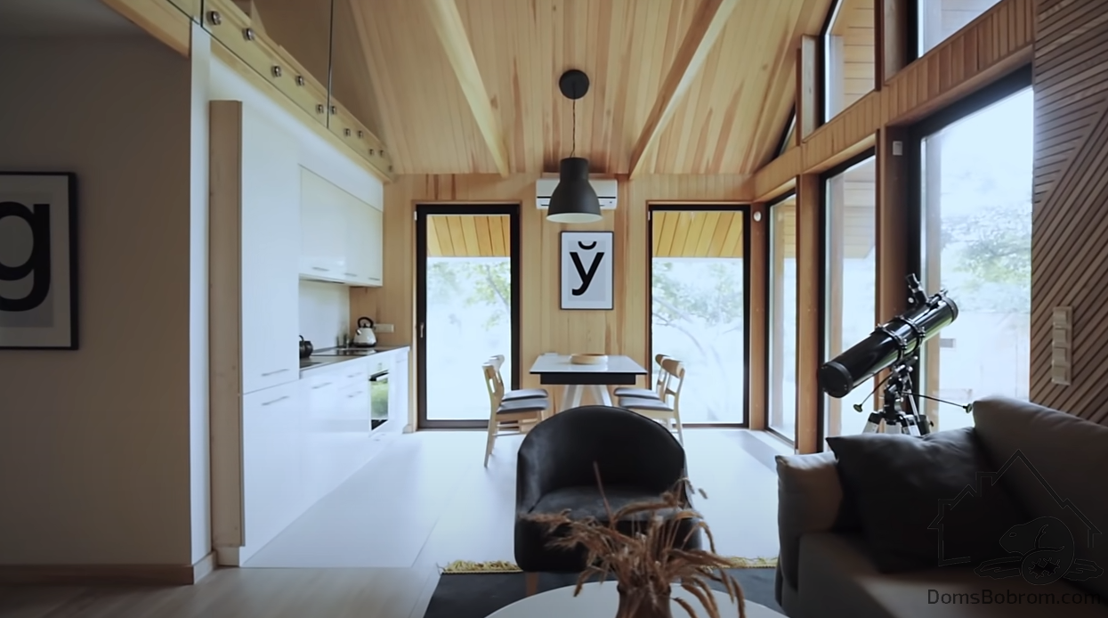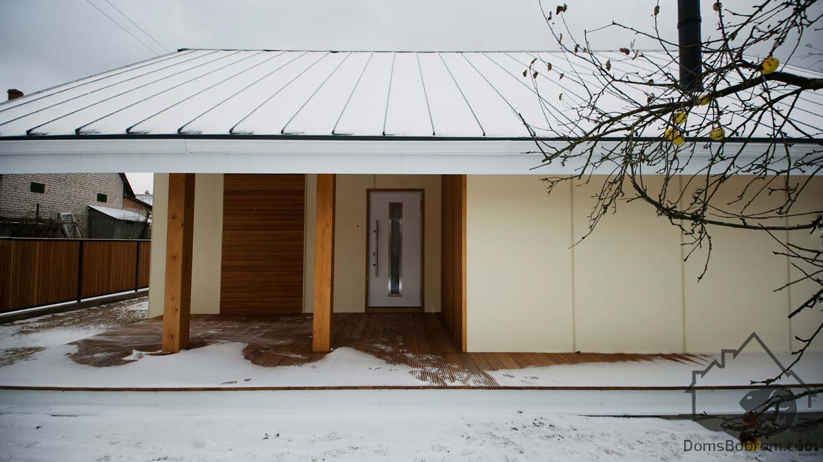 Дом Smuga - это шикарный одноэтажный или 1,5 этажный дом с высокими потолками и огромными окнами. Первое, что бросается в глаза, - это нестандартный экстерьер. Такое решение делает дизайн современным и органичным. Это не только красиво, но и практично, и экономично. В гостиной всегда будет светло и комфортно. Терраса добавит комфорта в повседневную жизнь, вы точно оцените ее в слякотную погоду, а также если у вас есть дети.