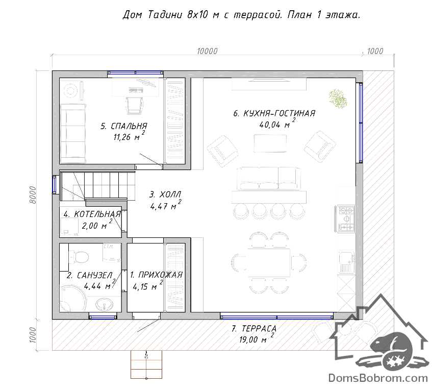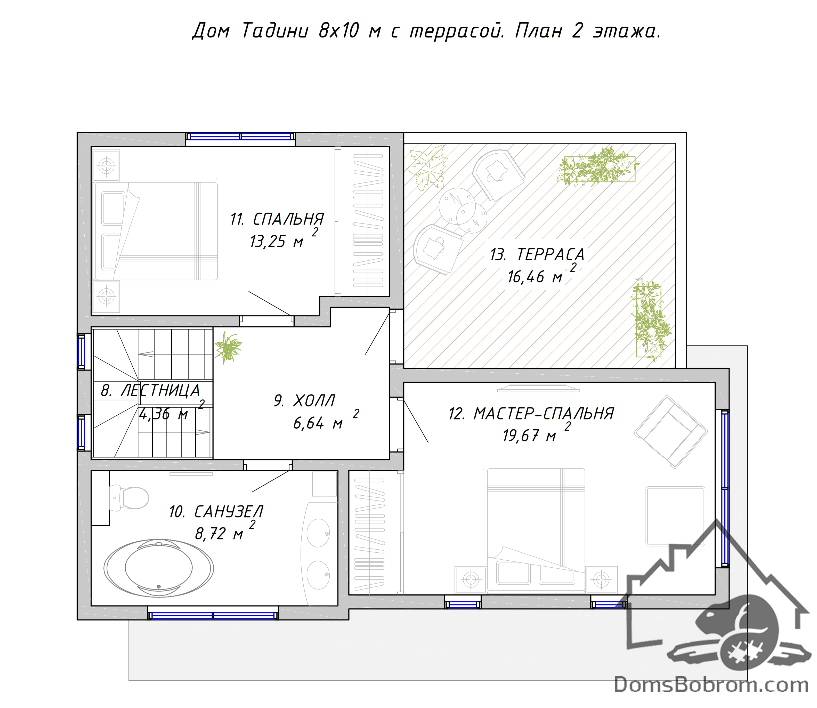 Размер дома 8м х 9м; 10м x 8м; 10м х 10м