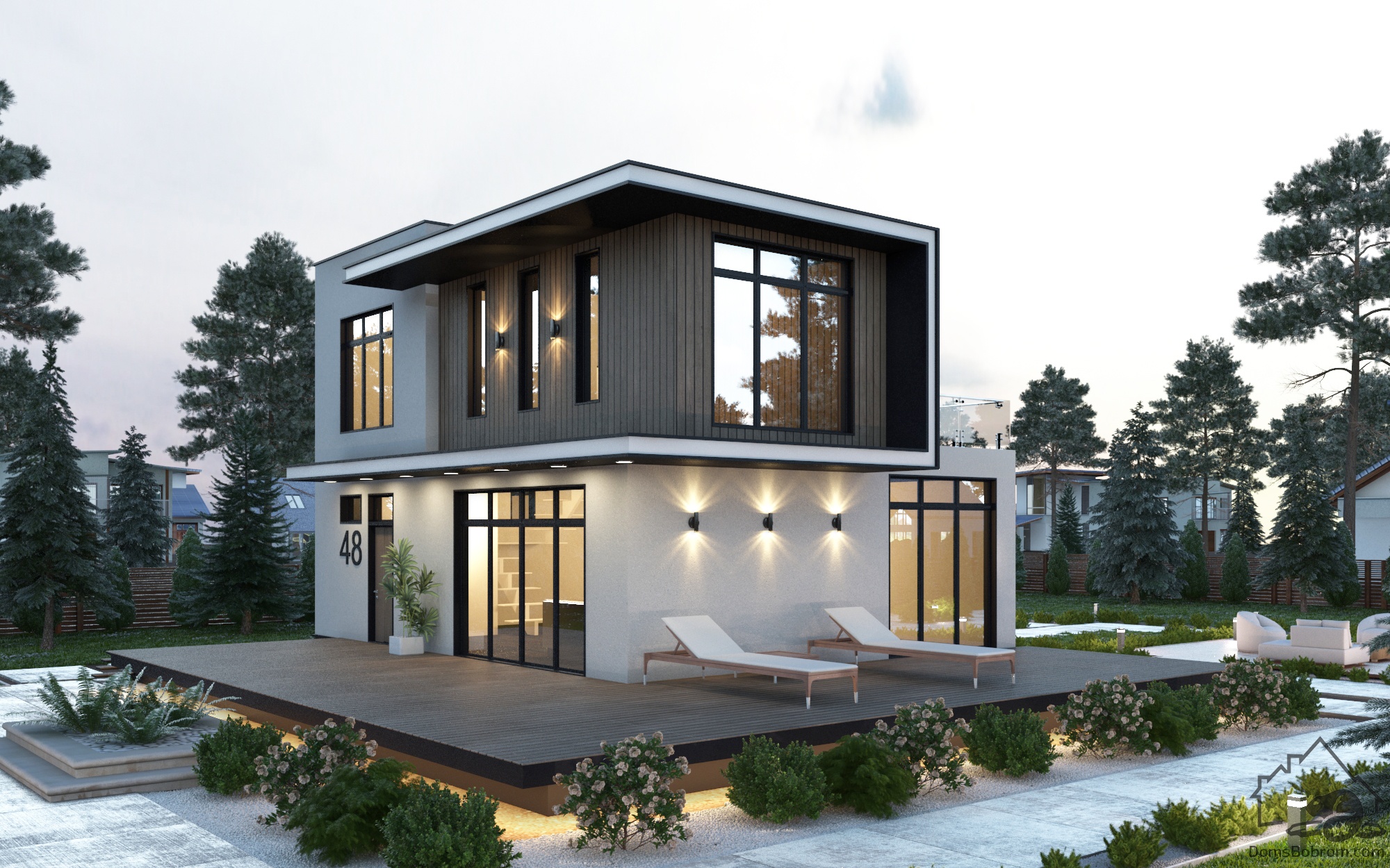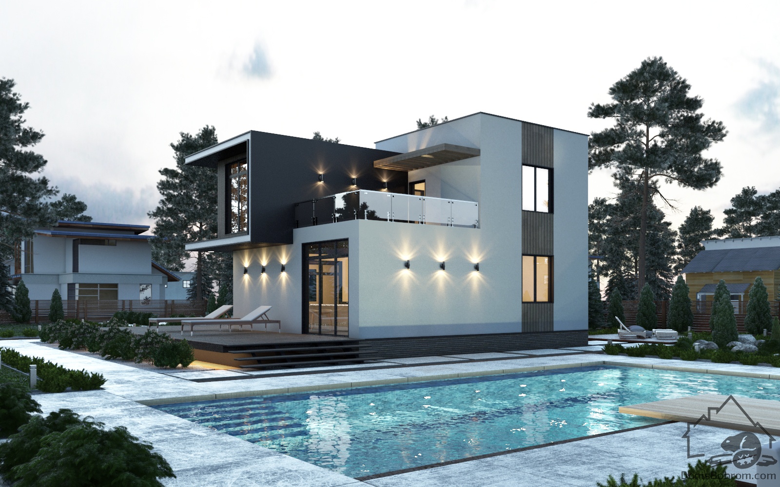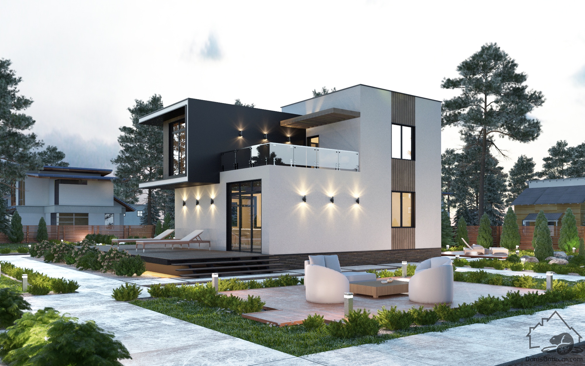 Дом Tadini - это стильный, двухэтажный дом для круглогодичного проживания. Проект выполнен в стиле хай-тек. С такой отделкой он органично вписывается в окружающую среду, при этом подчеркивая индивидуальность хозяев. Сочетания различных материалов наружной отделки и несколько уровней уличного освещения создают дополнительный объем. Стеклянное ограждение террасы второго этажа придает проекту невесомость, элегантность и добавляет легкости всей конструкции.