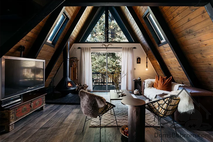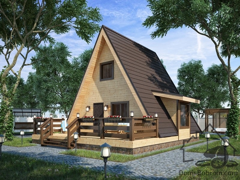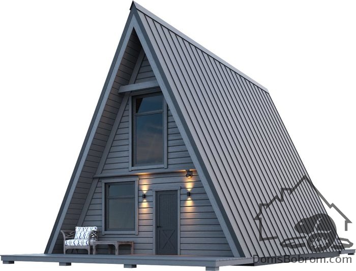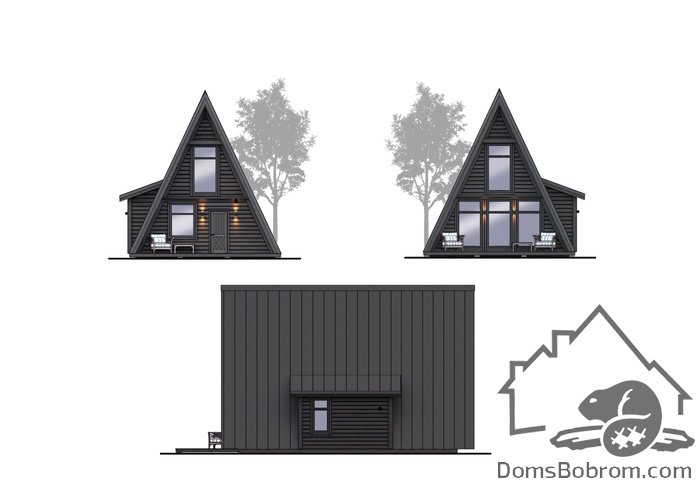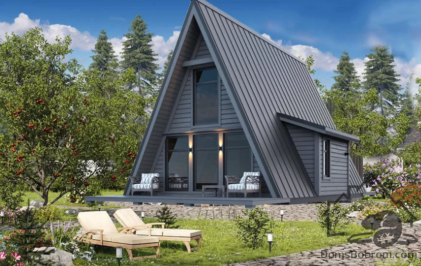 Самая главная особенность и достоинство треугольного дома - отсутствие снеговой нагрузки, то есть фундамент можно сделать достаточно легким (например, свайно-винтовым).