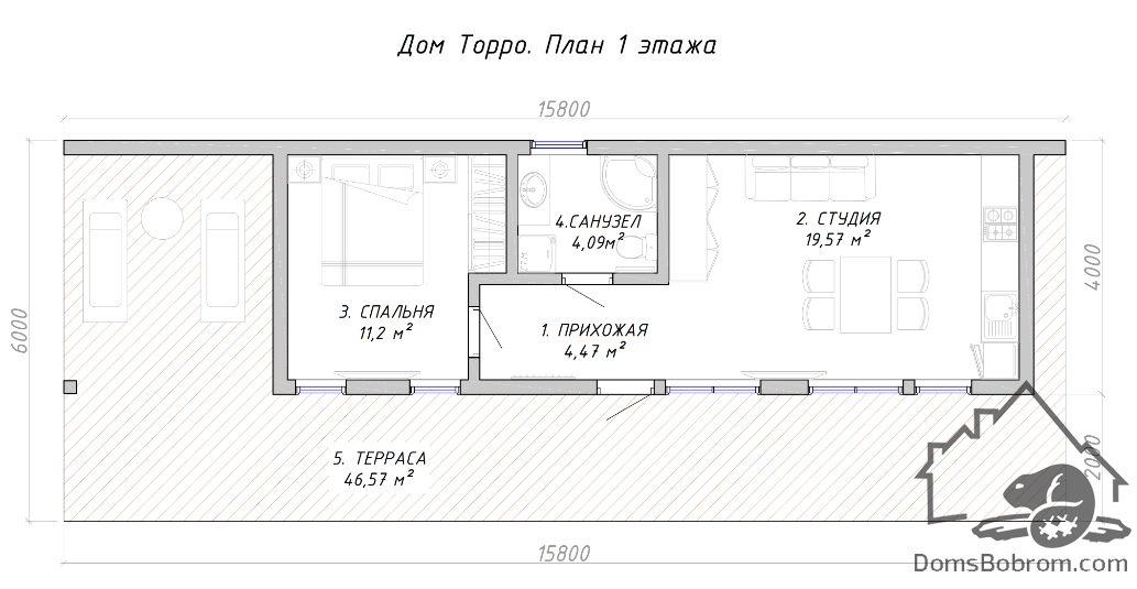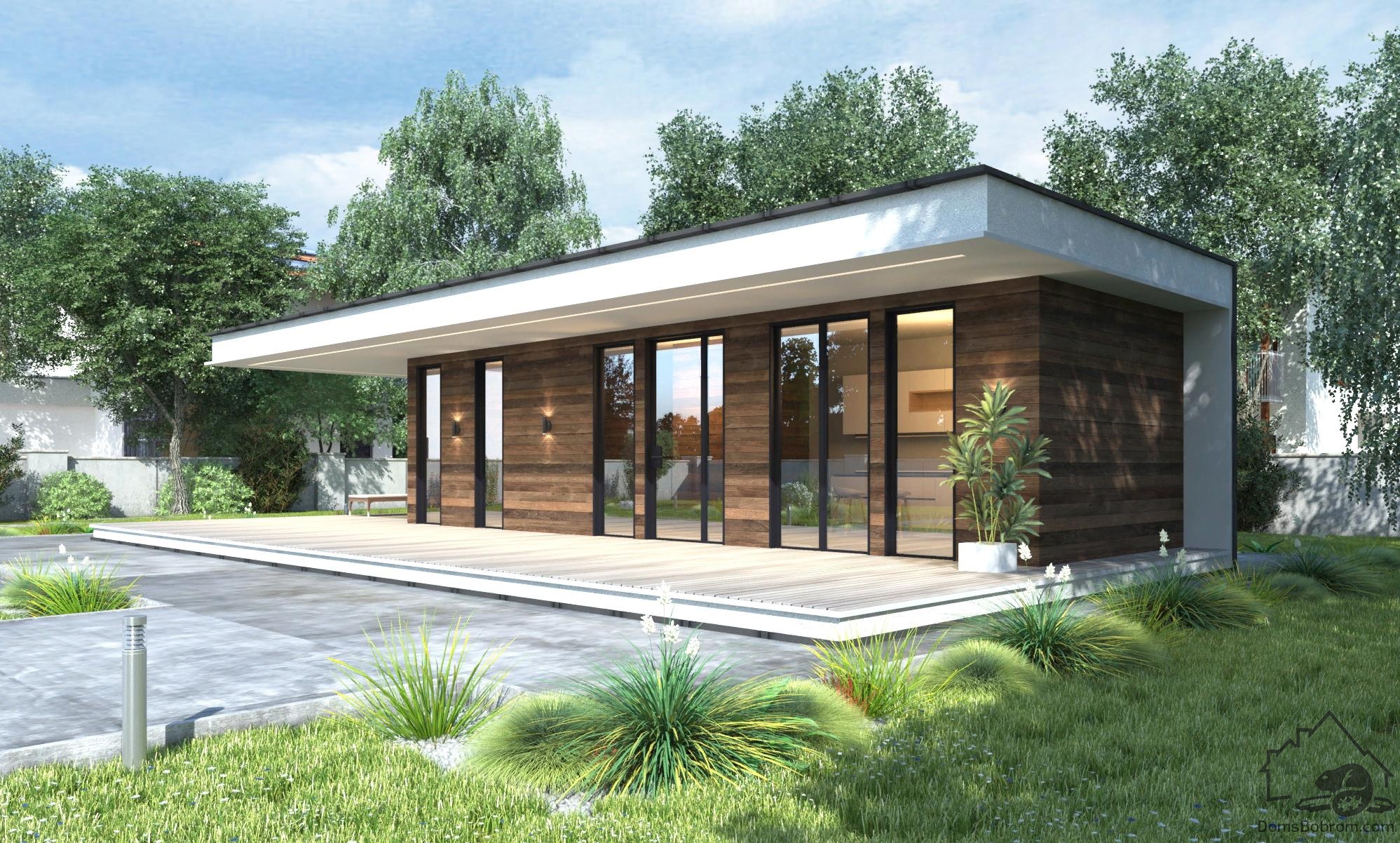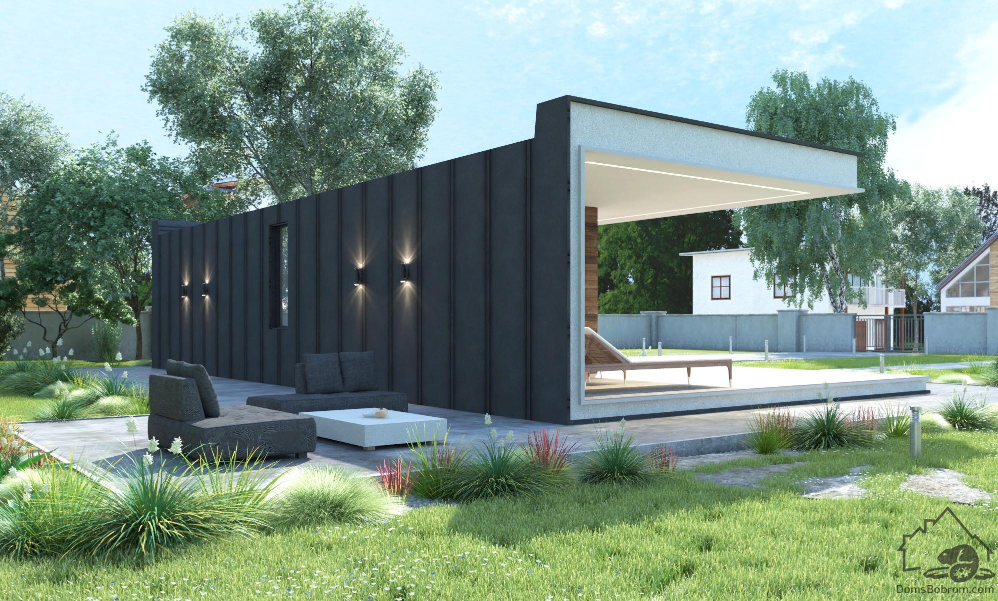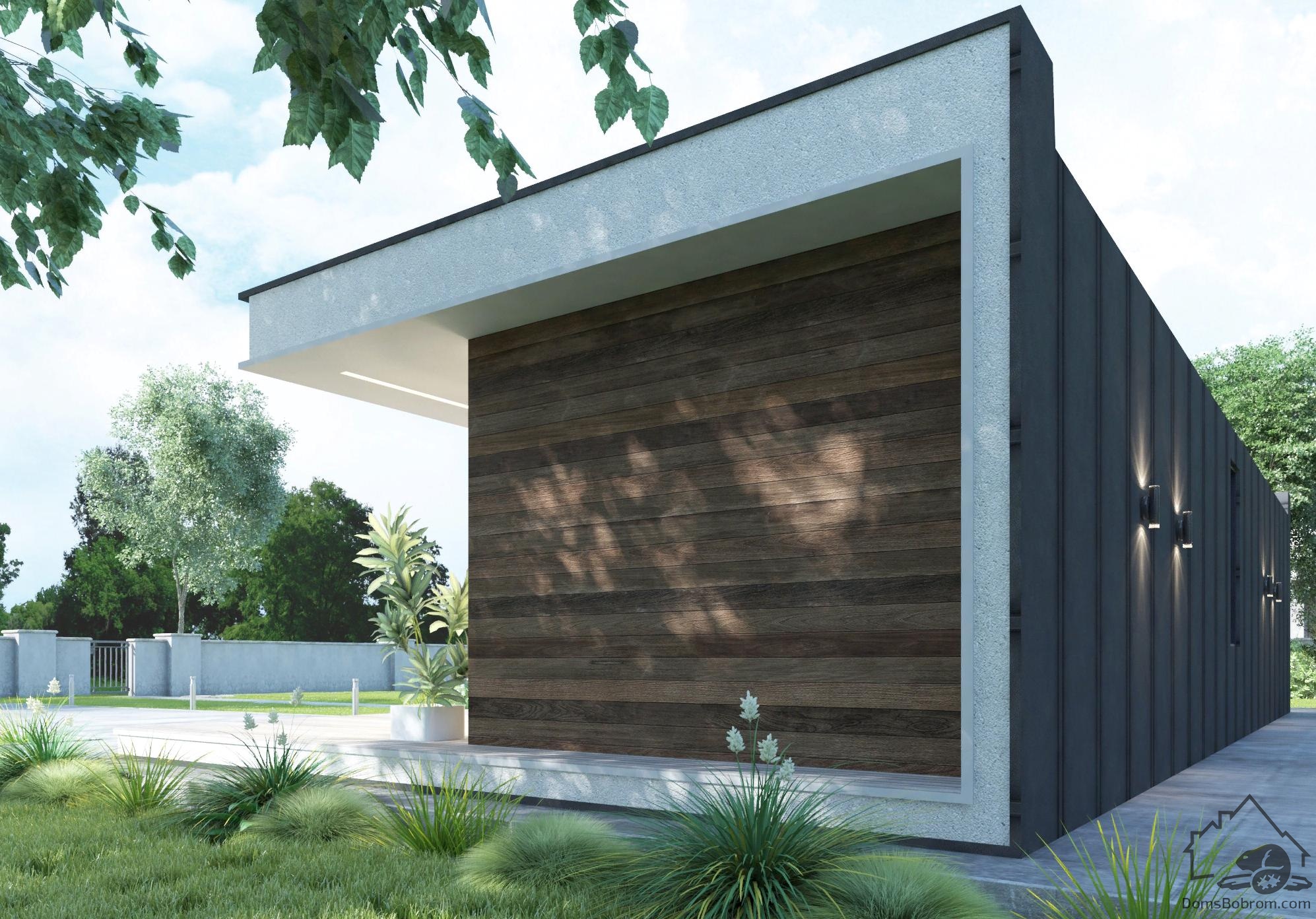 Проект каркасного дома Torro отличает элегантная простота и четкость. Навесы и терраса создают дополнительное пространство для отдыха и встреч с друзьями, ведь сам дом небольшой. Часть террасы можно сделать спальней, тогда в доме их будет 2. Отделка дома может самой разной.