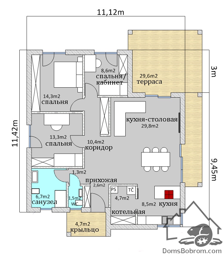 - Окна, дверь:Окна/балконные двери белые металлопластиковые с двухкамерным стеклопакетом. Профиль Brusbox. Входная дверь металлическая с теплоразрывом.