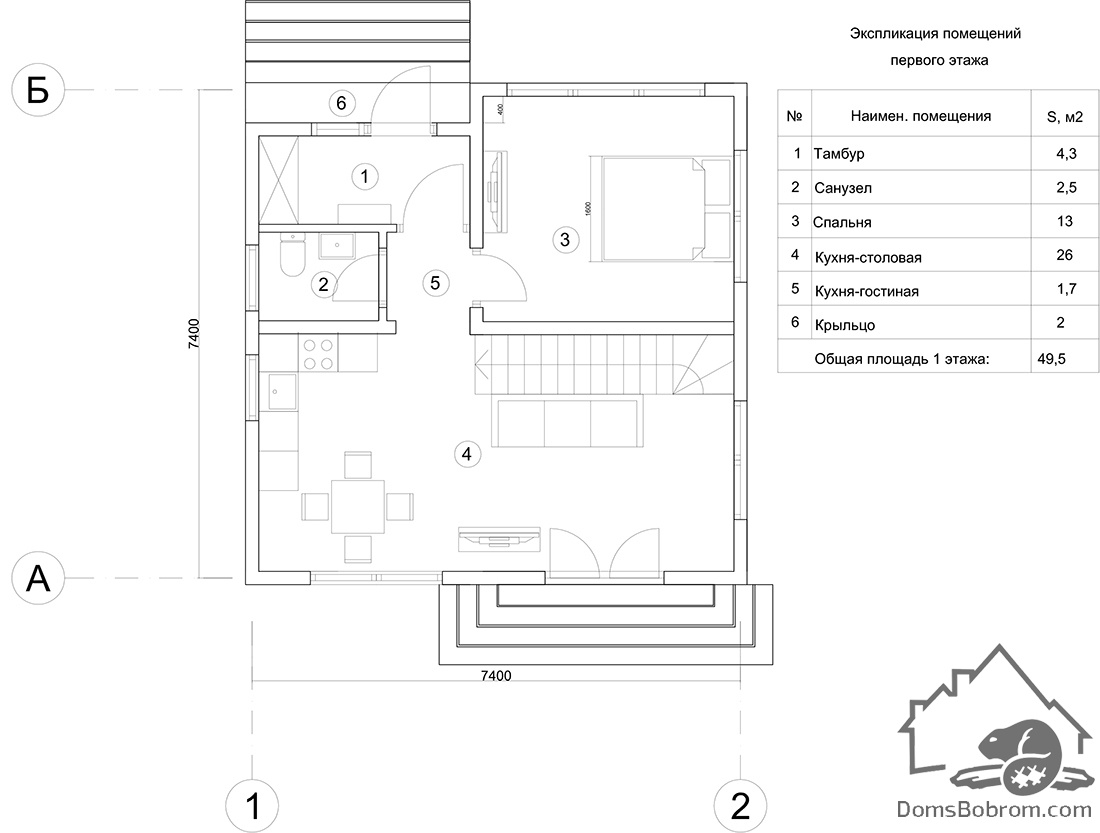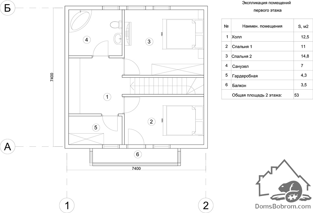 Размер дома 7,4 м х 7,4 м