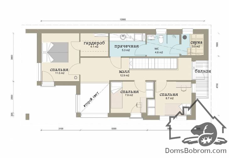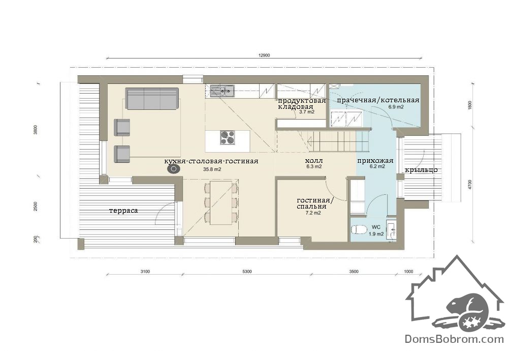 Дом Viestos - это впечатляющий двухэтажный дом для семьи из 3-5 человек. Подойдет для проживания с пожилыми родителями под одной крышей, ведь на первом этаже есть спальня. Также на первом этаже расположены общие и хозяйственные зоны, сауна. На втором - приватная зона спален.