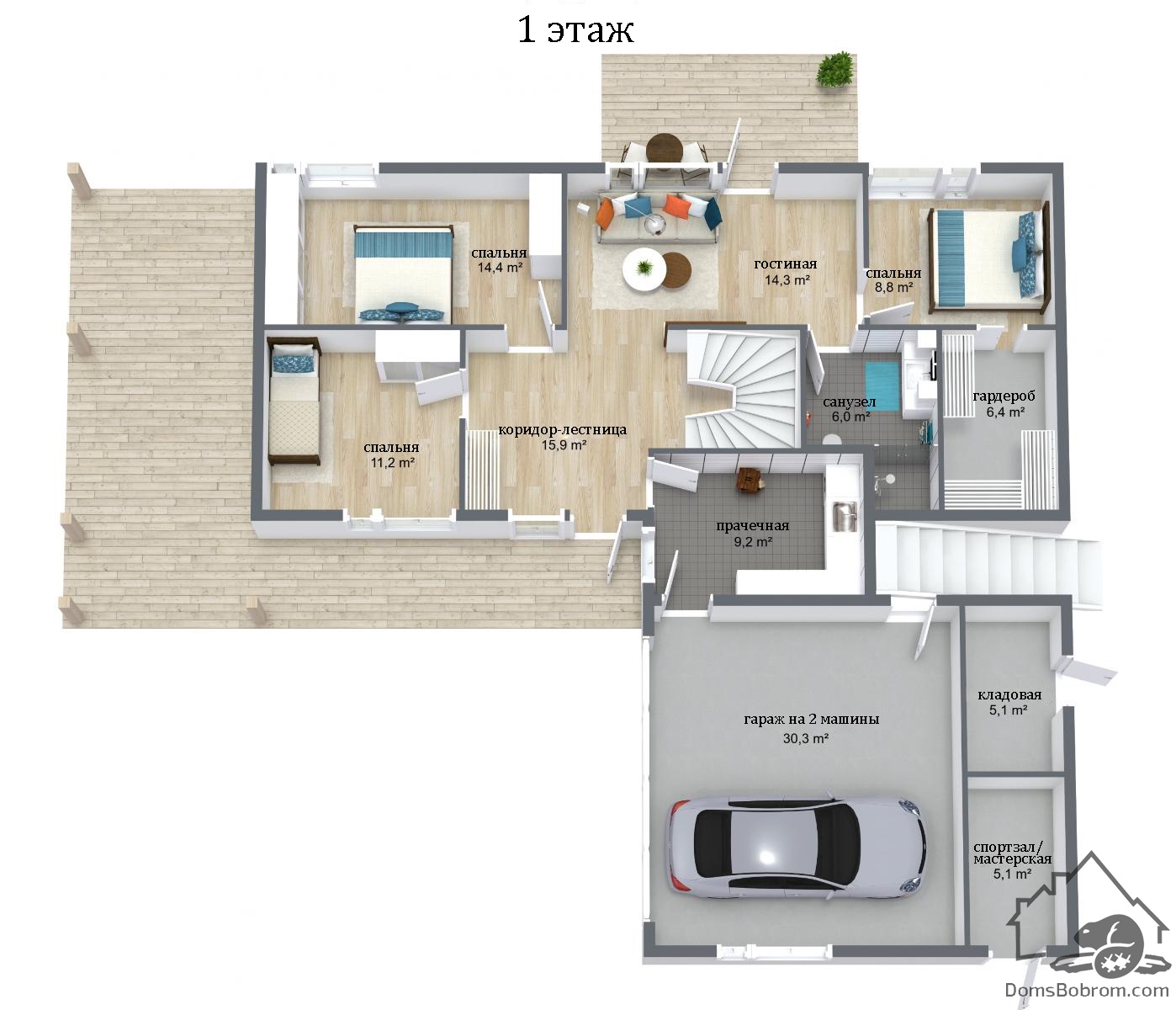 - Объемные виды дома или коттеджа