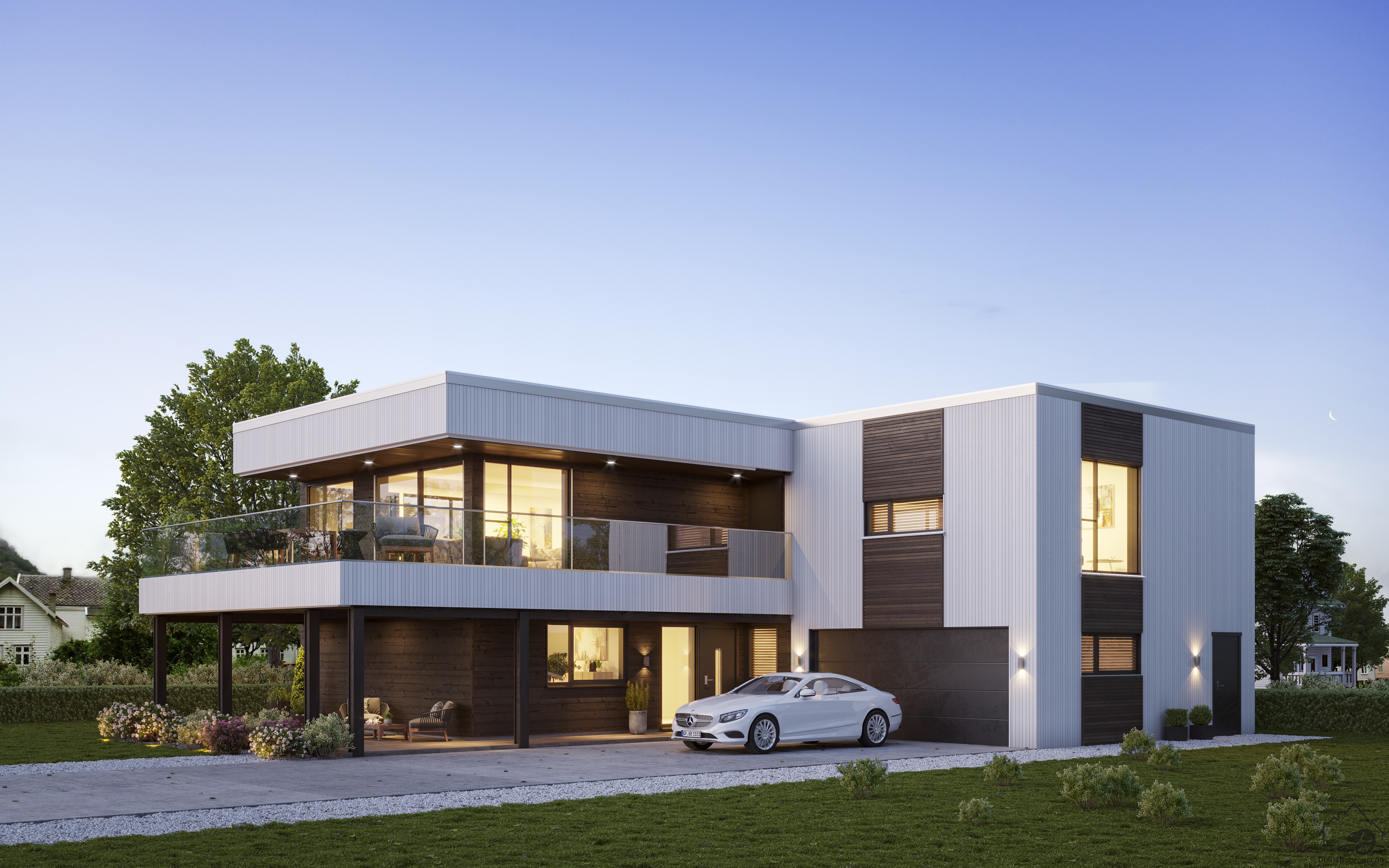 Дом Vilje - это дом, в котором есть все. Большие панорамные окна делают дом открытым и светлым. На крытый балкон можно выйти из гостиной через большую приподнятую раздвижную дверь. Помимо 4-х больших спален, в доме есть отдельная квартира, которая находится над встроенным гаражом - помещение отлично подойдет для проживания обслуживающего персонала или сдачи в аренду.