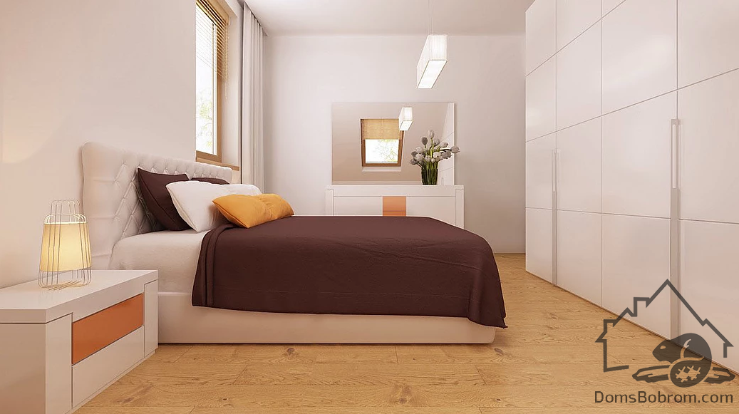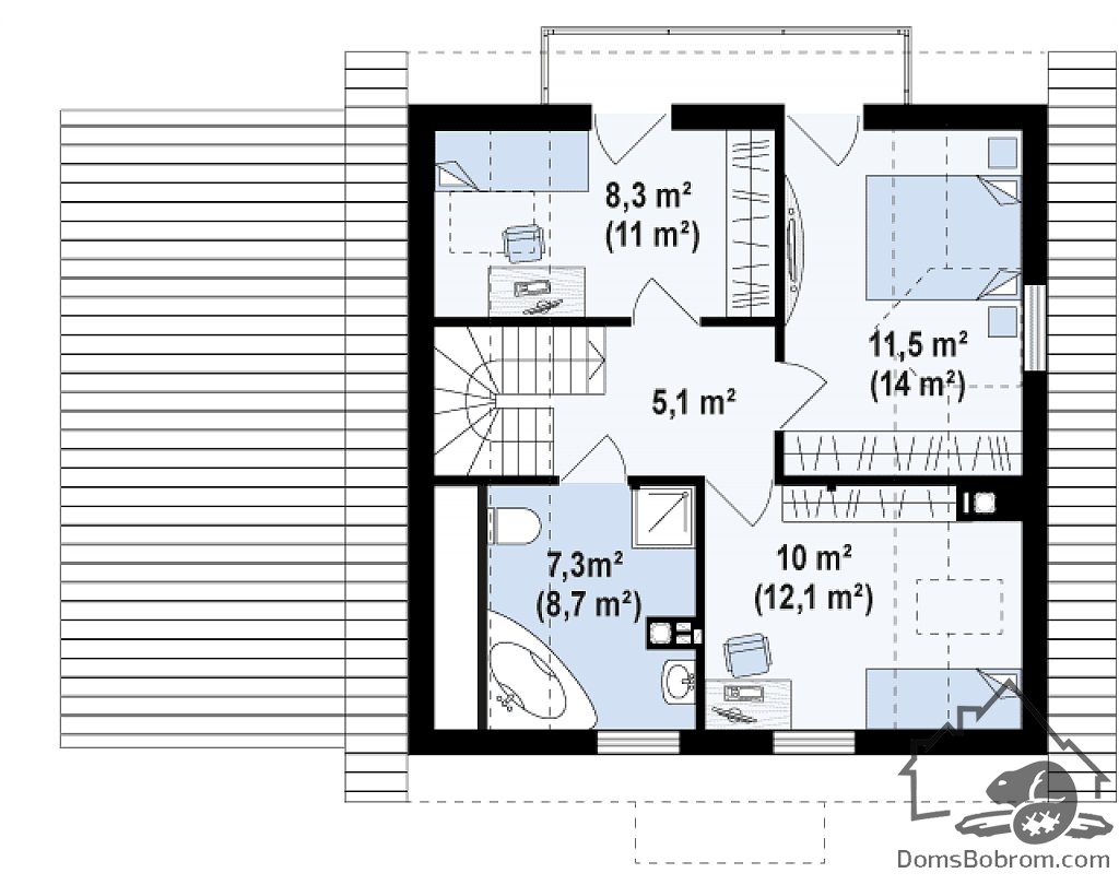 На втором этаже расположены три спальни, в каждую из которых можно попасть из холла с лестницей.
