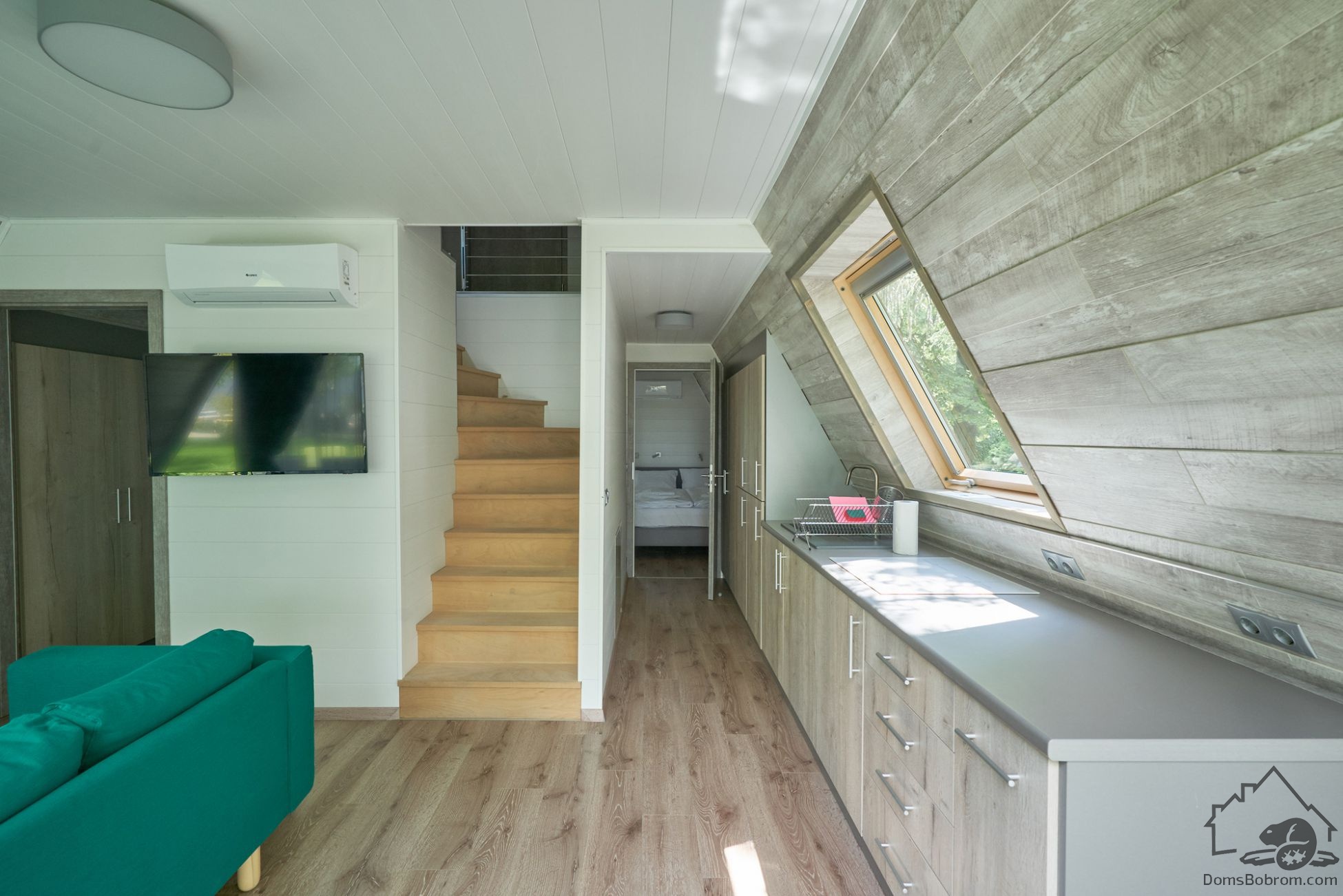 Дом Zanka построен по каркасной технологии. Снаружи - дранка и мягкая черепица. Внутри - легкий интерьер, где все просто, но при этом функционально. Лестница продумана и безопасна.