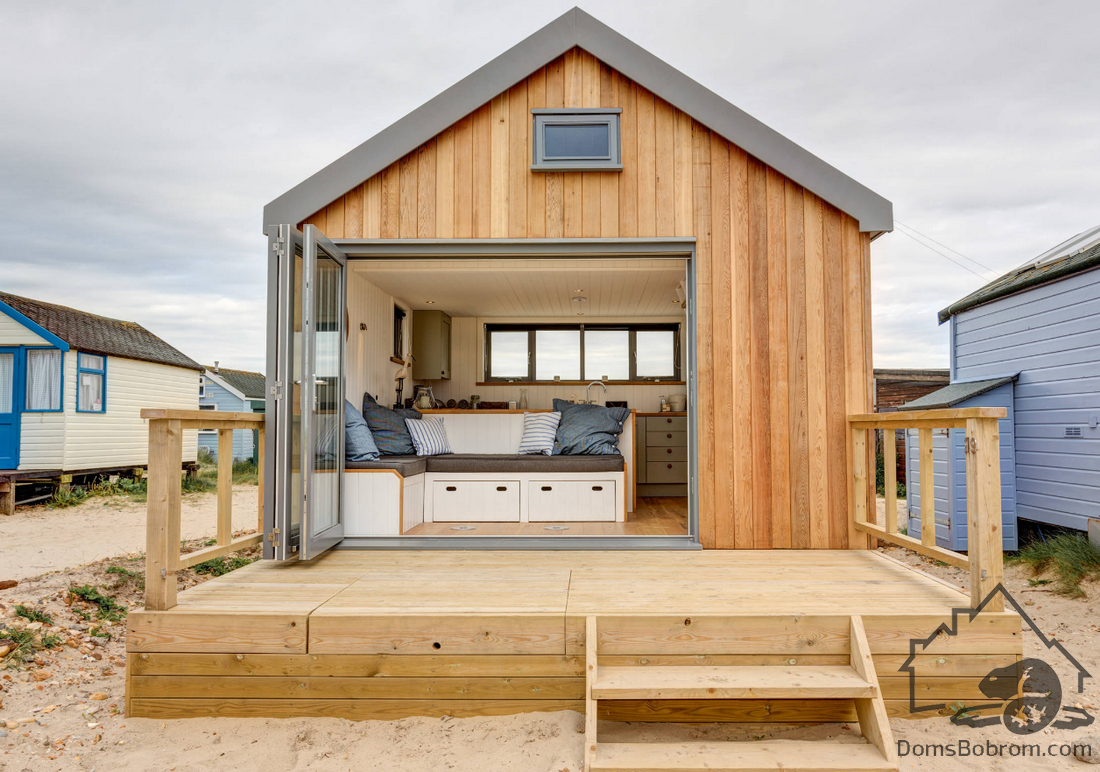 Дачный домик Rioxa можно использовать как летний домик или как гостевой дом. Также такой вариант подойдёт для туристических баз и домов отдыха. Входная дверь и основное остекление выполнено на фасадной стене. Перед входом имеется большое открытое крыльцо-терраса. На боковых стенах установлены дополнительные окна для освещения внутреннего пространства.
