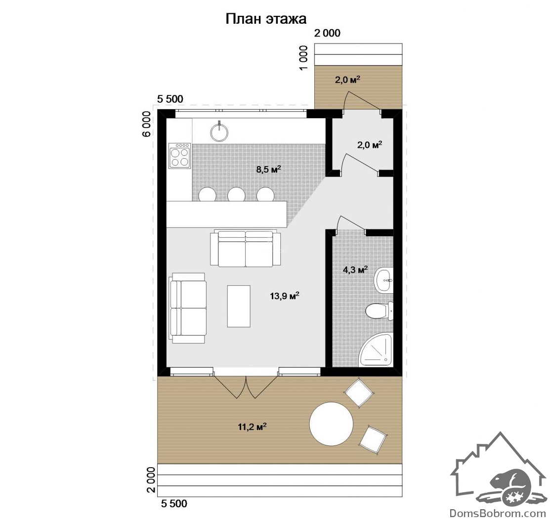 Стоимость строительства дома по проекту «Проект каркасного мини-дома Rioxa»