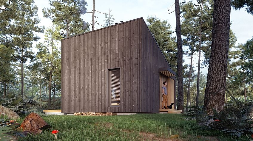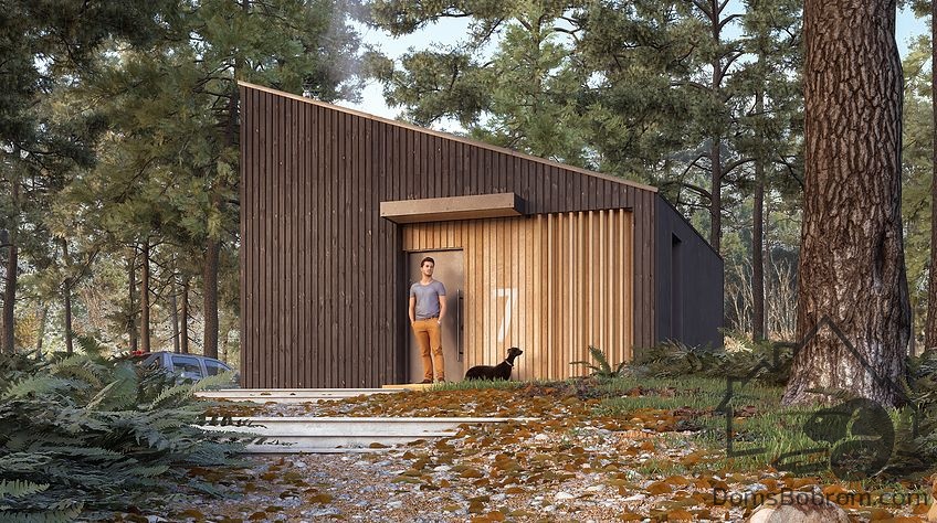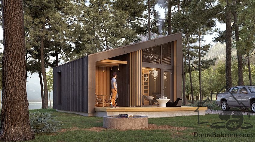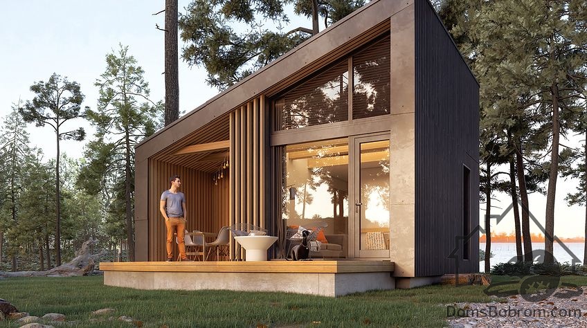 Дом Roxa - это компактный модульный домик-дача или гостевой дом. Большие окна от пола до потолка переносят природу в жилые помещения. Крытая небольшая передняя терраса обеспечивает защиту от непогоды. Внутри поместилось все самое необходимое для комфортной жизни.